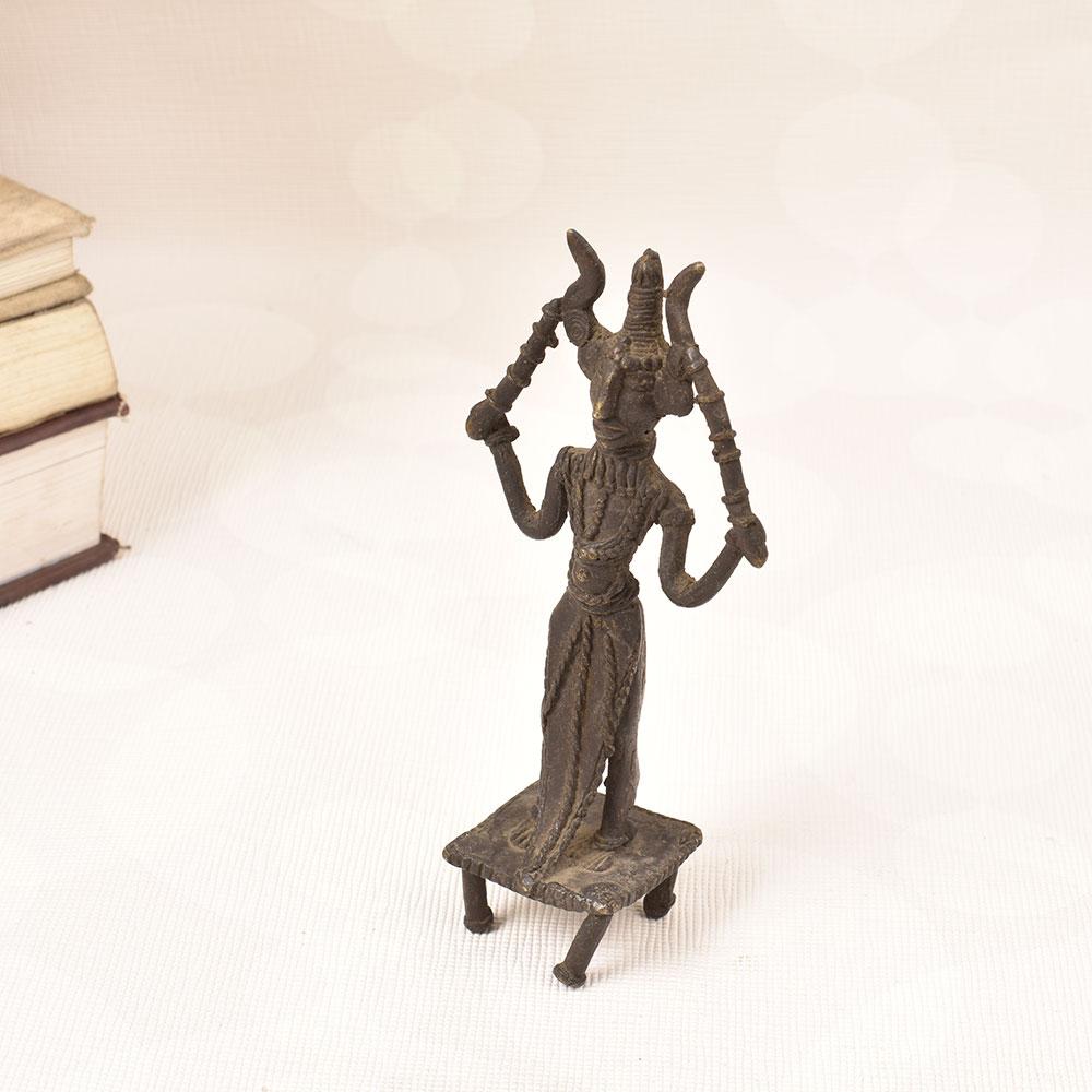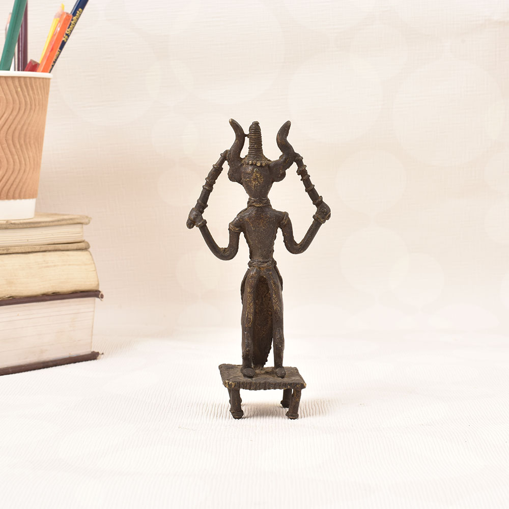 Bring the divine energy of Lord Shiva into your home with this captivating folk brass statue. Crafted by skilled artisans, this stunning piece is a work of art that will elevate your sacred space. This folk brass Lord Shiva statue is more than just a decoration - it's a vessel for the powerful energy of the Hindu deity associated with transformation, destruction, and rebirth. Gaze into Lord Shiva's serene face and feel the weight of his calming presence in your space. As the centerpiece of your meditation corner or altar, this statue will inspire you to connect with the divine and unlock your own capacity for change. Whether you're a seasoned spiritual practitioner or simply appreciate fine Tribal Art, this Lord Shiva statue is a stunning addition to any home. Place it in a prominent spot and let its timeless beauty and sacred energy elevate your environment. Invite the blessings of Lord Shiva into your life and experience the profound sense of peace and clarity that his presence can bring.