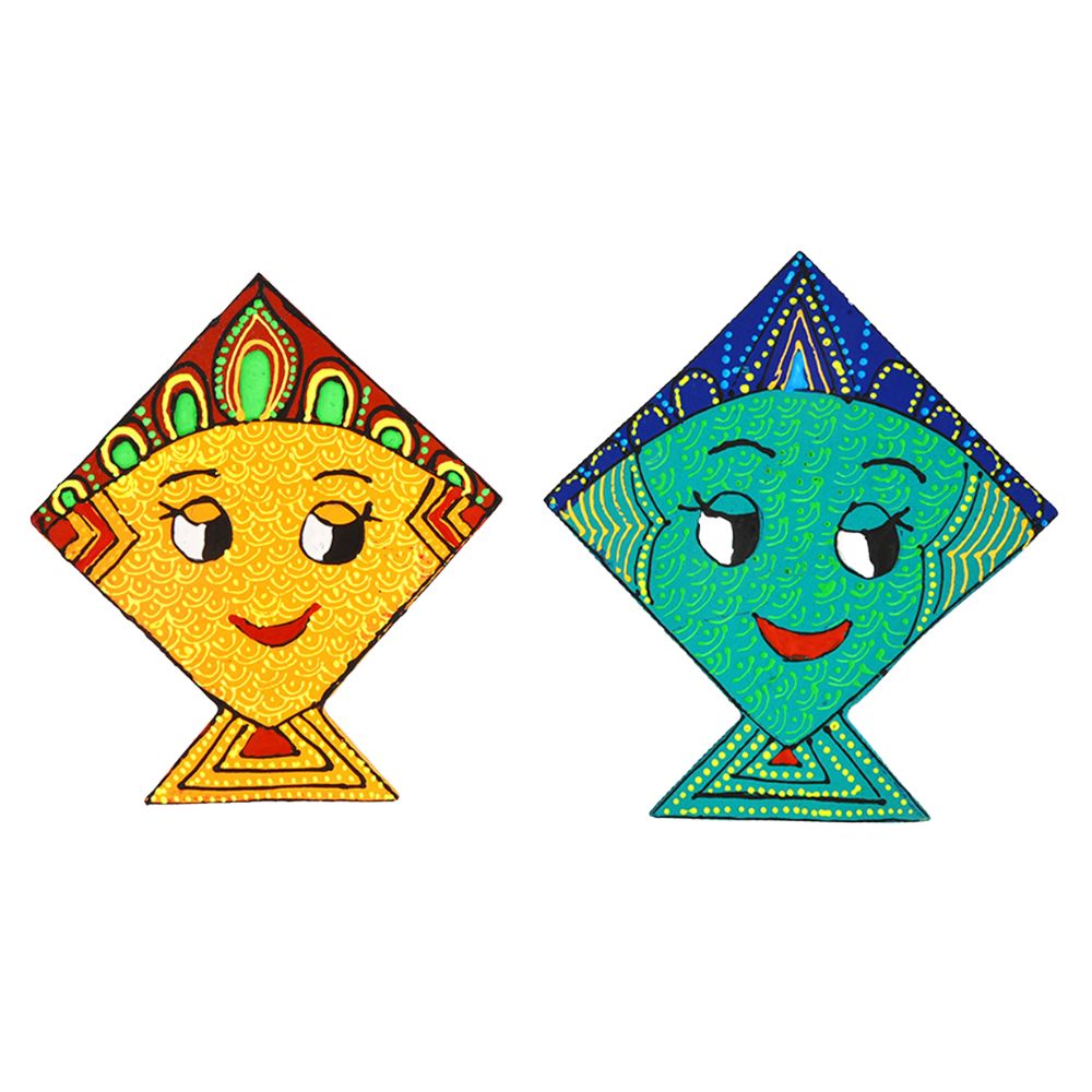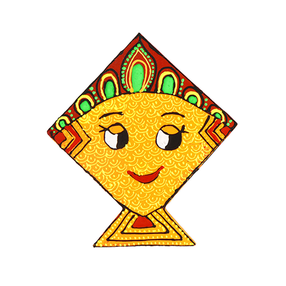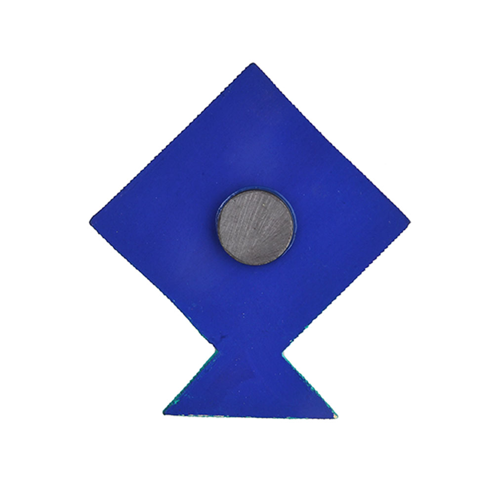 This decorative magnet features a kite shaped form created through traditional hand techniques. Expressive facial detailing and patterned surface work give it a lively personality while preserving an authentic handcrafted look.