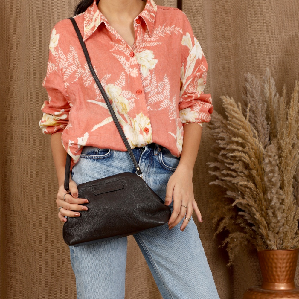 The clutch is paired with an adjustable and detachable crossbody sling, giving you the flexibility to carry it your waywhether as a statement piece in your hand or hands-free over your shoulder. With its vintage-inspired design and thoughtful functionality, the Slouch Clutch is the ultimate accessory for those who appreciate timeless style and practicality.