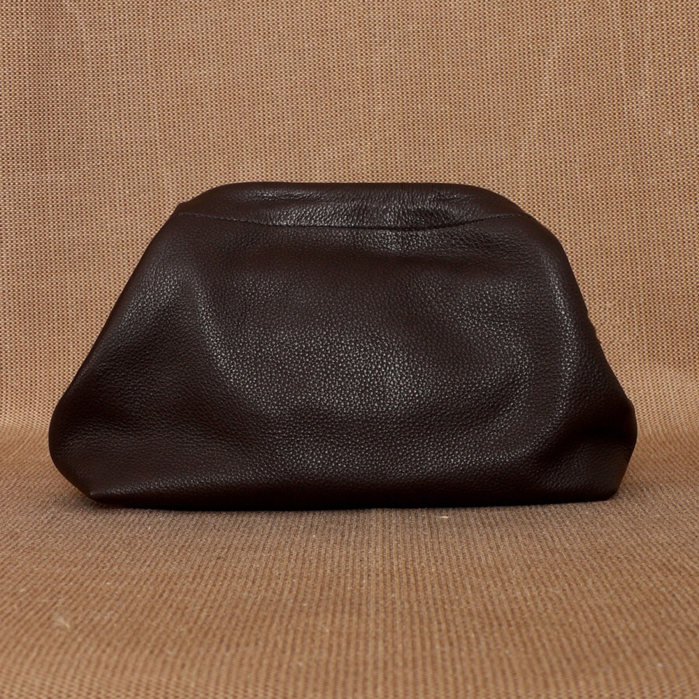 Crafted from lovely Ganache leather, it has a classic metal frame clasp closure, the Slouch Clutch offers a spacious interior with a combination zip pocket and an open pocket with a hanging key chain holder, ensuring your keys are always within easy reach, providing enough room for your essentials. It also includes an extra open pocket for perfect organization.