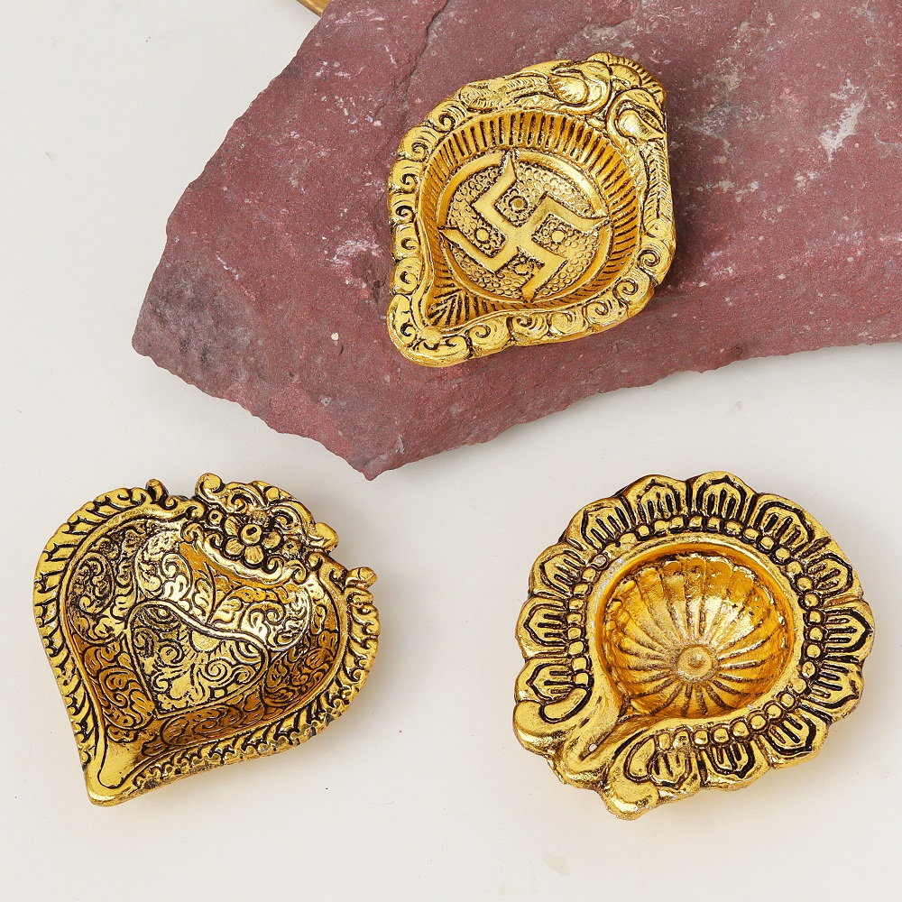 This Handmade Golden Aluminium Diwali Diya is specifically crafted to enhance the decor of your Mandir or prayer space. Its elegant golden finish and radiant glow make it a beautiful and meaningful addition to your religious practices during Diwali and beyond.