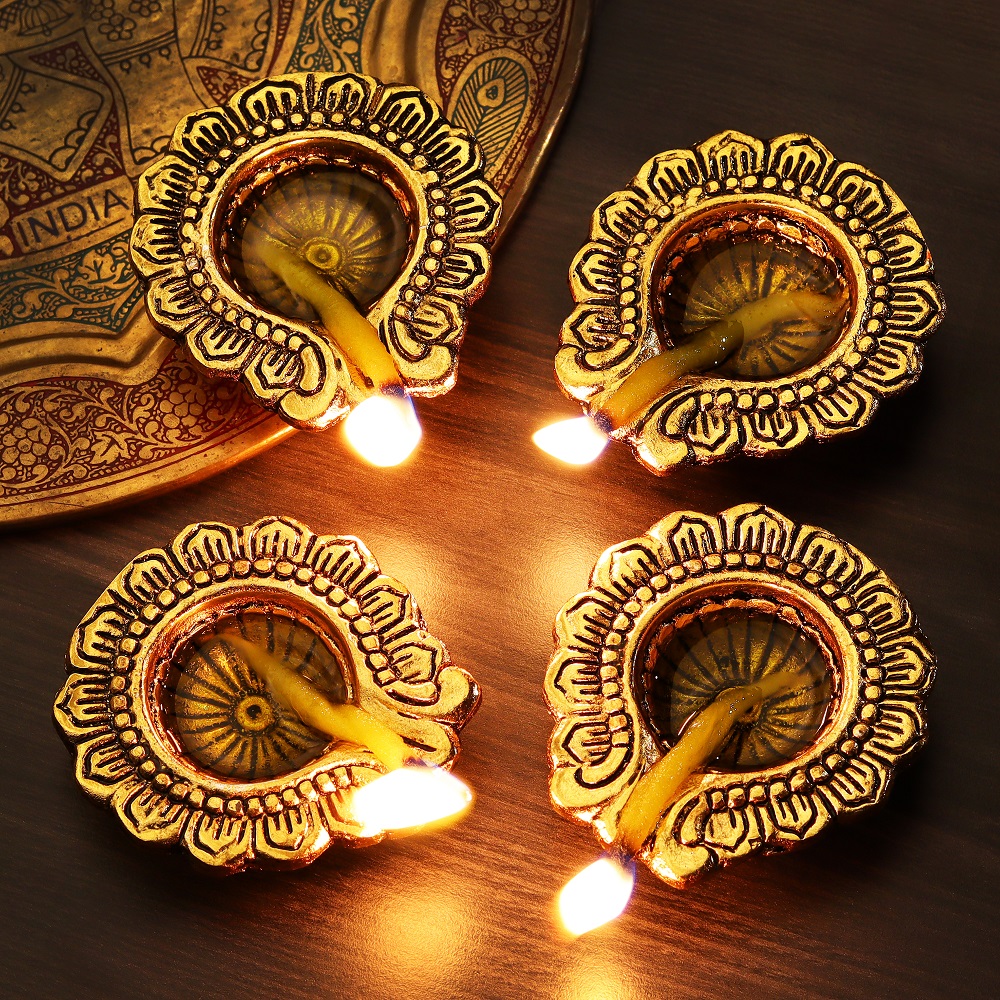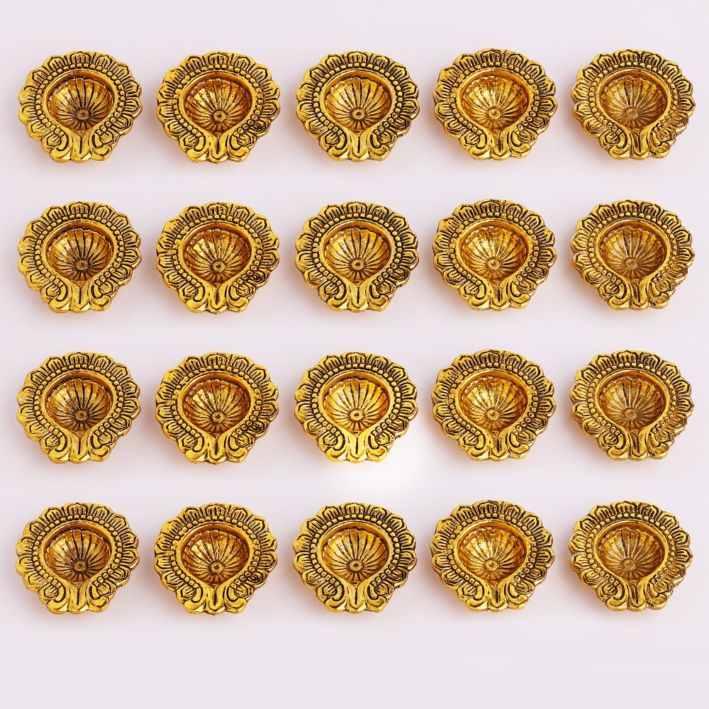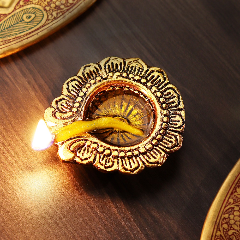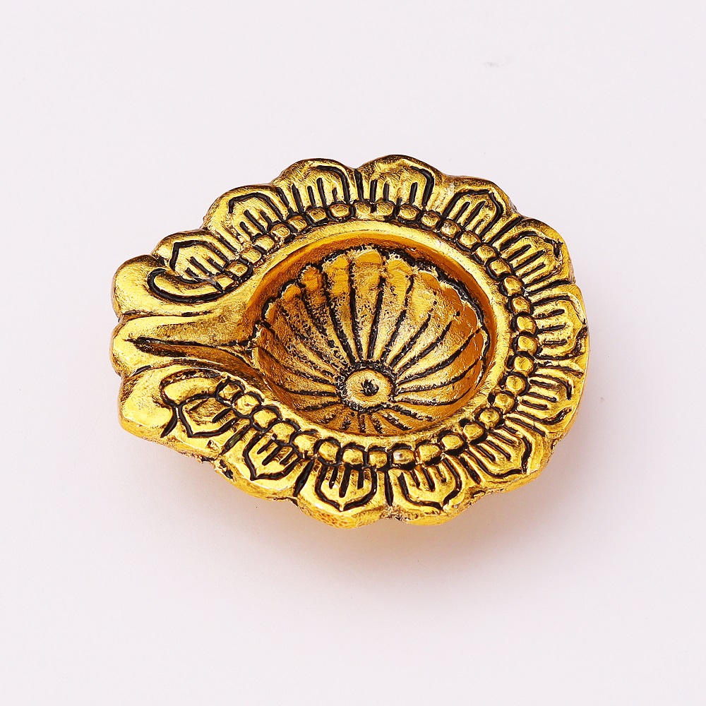 Envelop your Pooja room in the divine aura of Handmade Golden Aluminium Diwali Diya. Delicate detailing has brought this diya into existence which will ensure to bring forth warmth and serenity with your celebrations during Diwali. Luxurious golden finishes and eternal designs make the diya perfect for décor during Diwali celebrations.