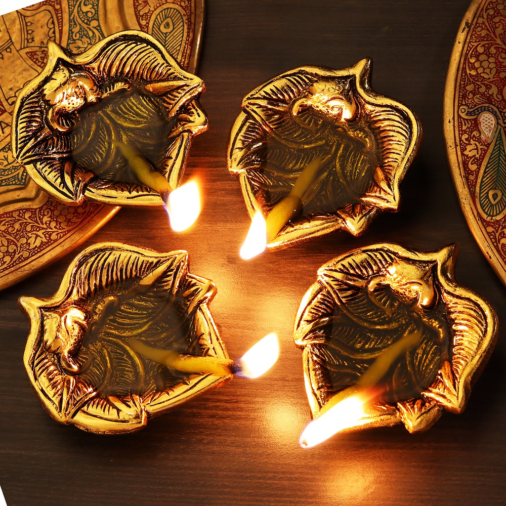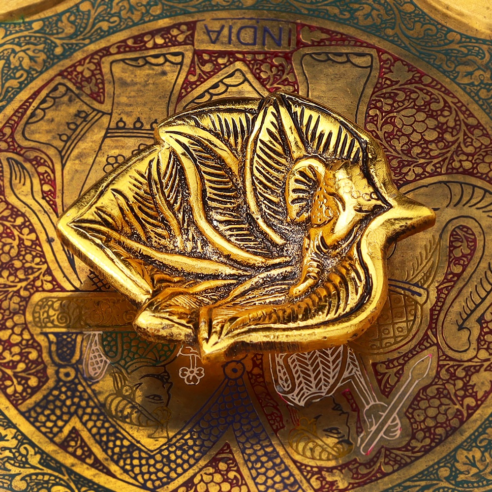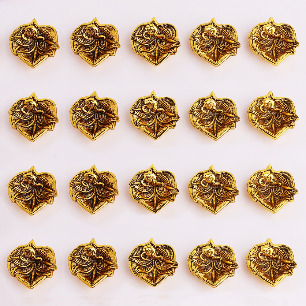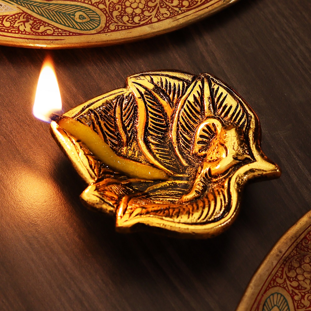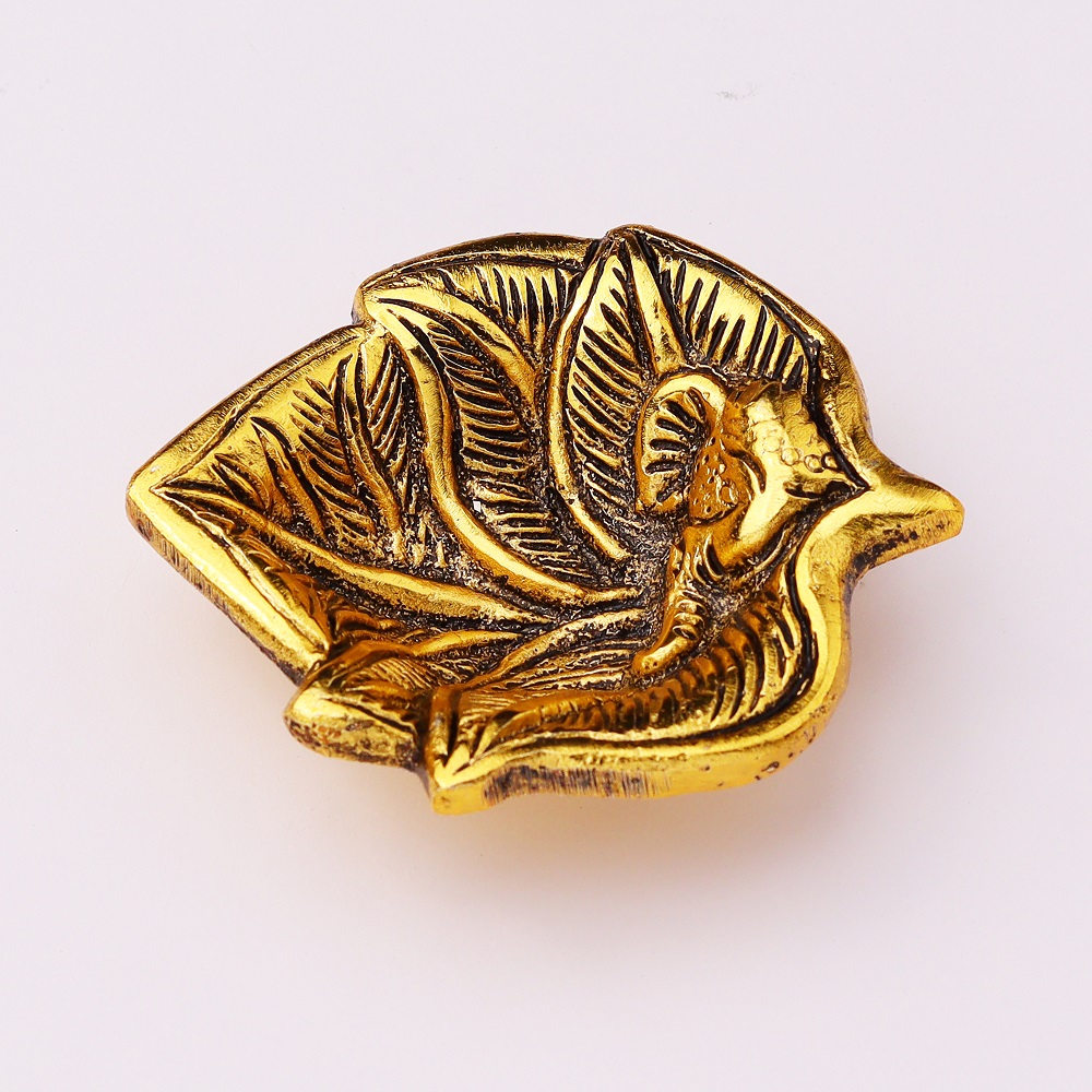 Bring peace, prosperity, and blessings into your space with this beautiful Golden Aluminium Ganpati Diya in a leaf shape. Its timeless design blends tradition with a modern touch, andthe golden finish adds a warm, elegant glow to your home or office.