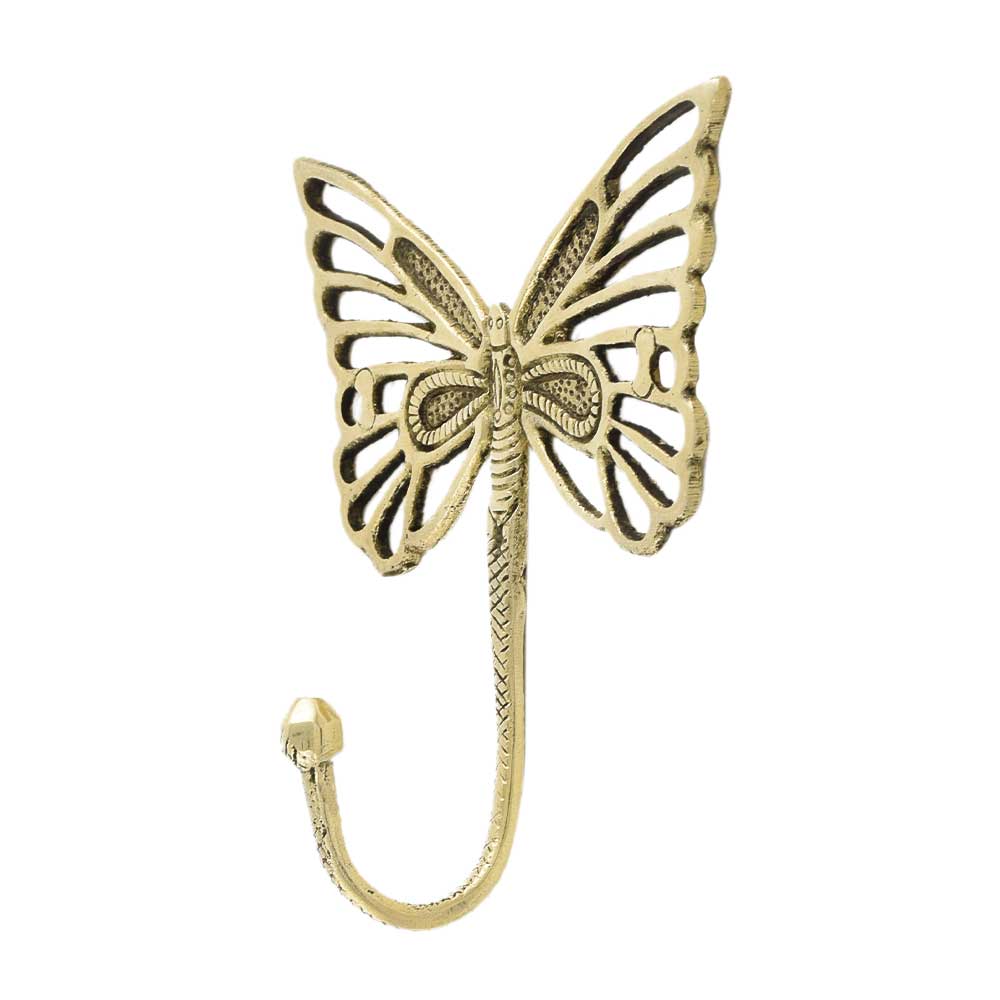 The handcrafted butterfly motif on this wall hook introduces a whimsical, nature-inspired charm to any room. The golden brass finish elevates its elegance, making it a perfect fit for various interior styles, from contemporary to vintage.
