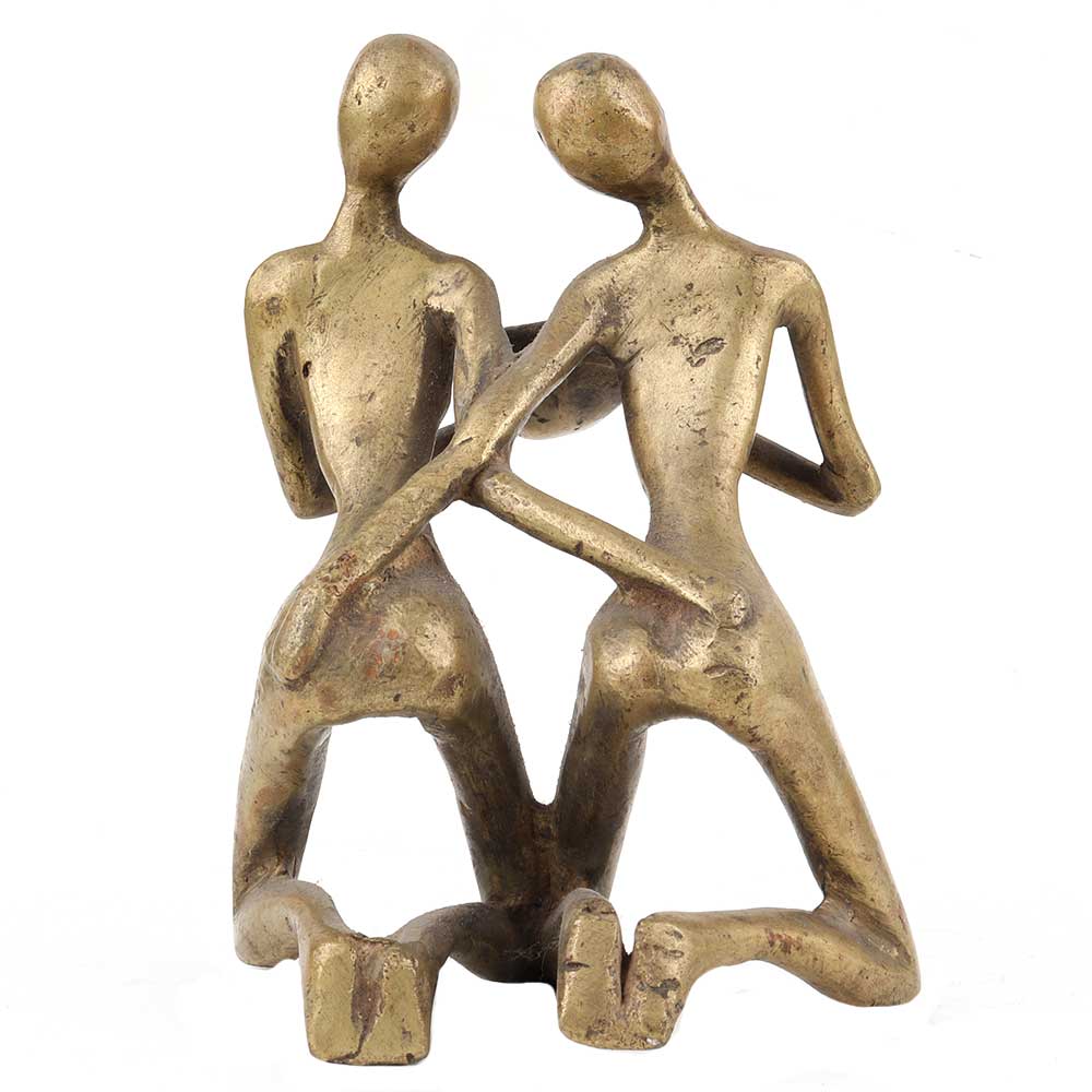This solid brass couple sculpture or statue is handcrafted and cast by the local artisans. This statue is an ideal gift for anniversaries, Mothers Day and Fathers Day.