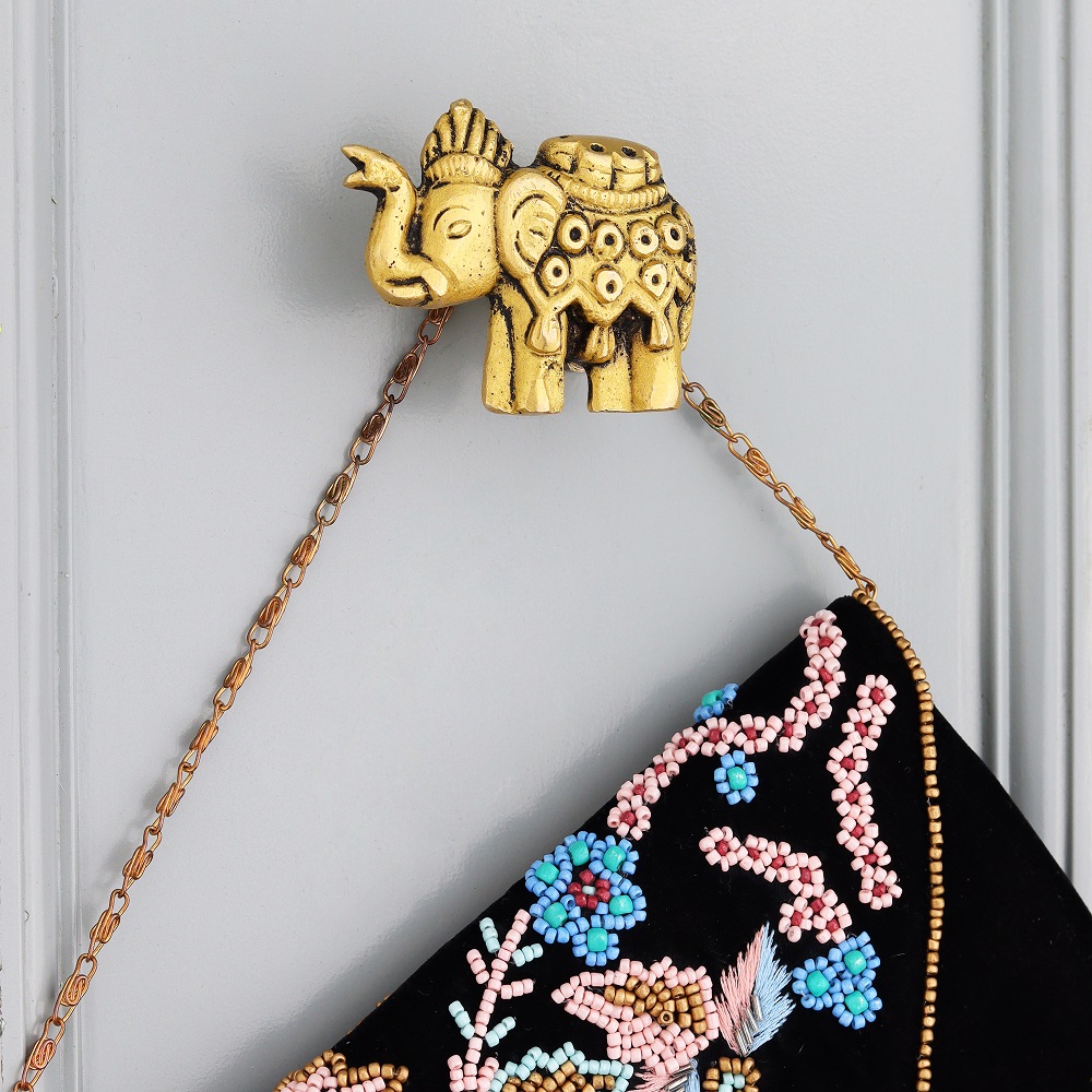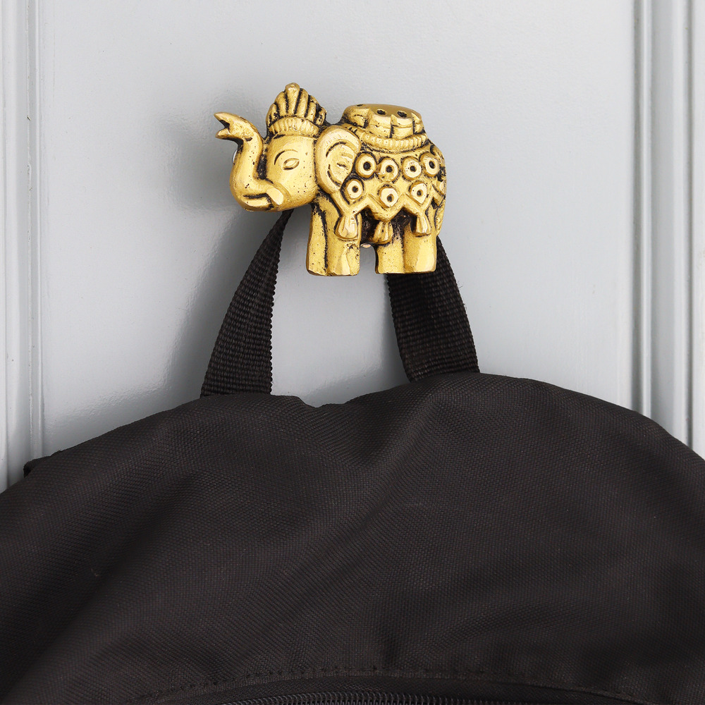 Modern Brass Elephant Wall Hook In Golden Color. This Hook is Strong Enough to Hold Your Bags, Hand Towels, Cloths Etc.