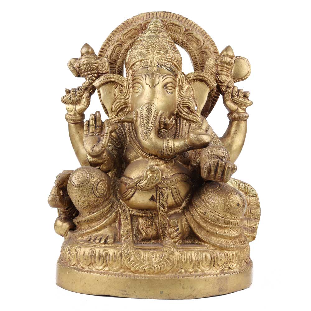Handmade Golden Brass Sitting Lord Ganesha with a blessing Pose is a popular spiritual good luck gift, feng shui gift, thanksgiving gift, anniversary gift, Easter gift, anniversary gift, wedding gift, Christmas gift, Diwali gift.