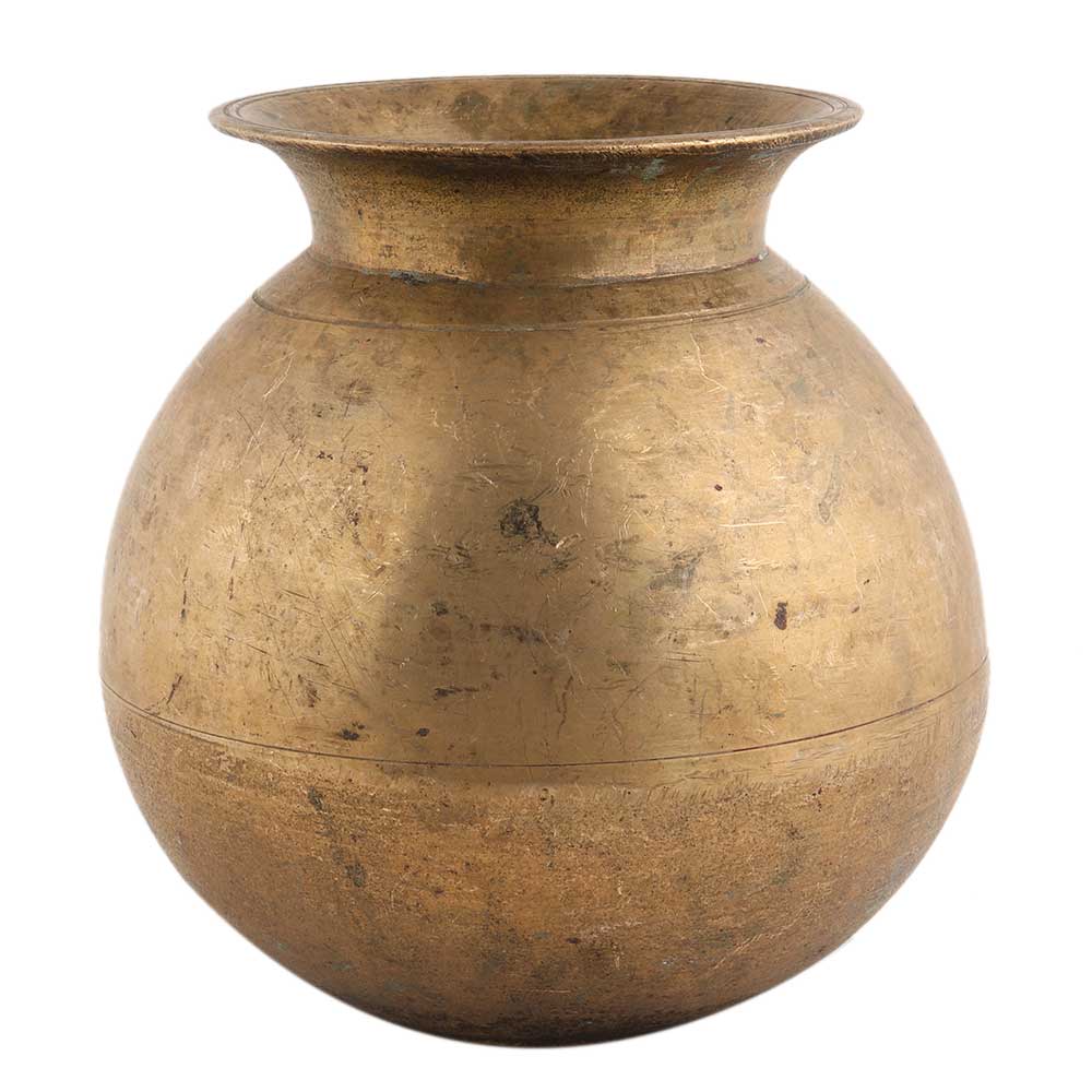 This handmade golden brass water pot or lota is very suitable as a wedding, an anniversary gift for parents or husband/wife or as a delightful addition to your current pooja series.