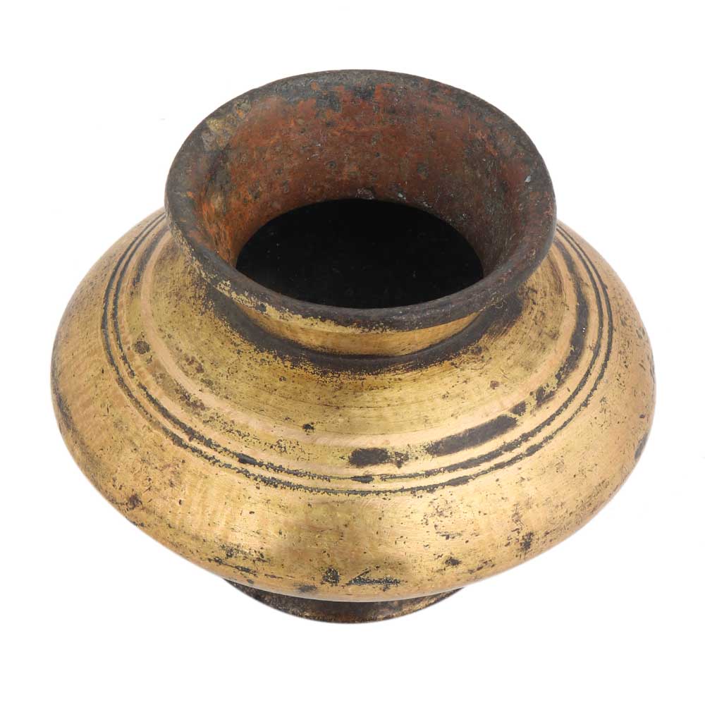 Used in the kitchen in the olden days this handmade wide brass pot can be used as an exquisite table decoration feature in a modern setting.