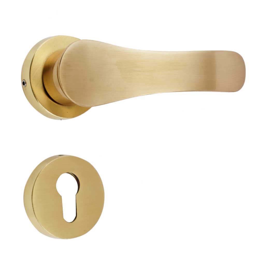 This handle set is designed to withstand the test of time. The golden brush finish provides a sophisticated and unique appearance, ensuring that your doors stand out with elegance. Crafted with care and precision, this set is built for smooth, reliable functionality.