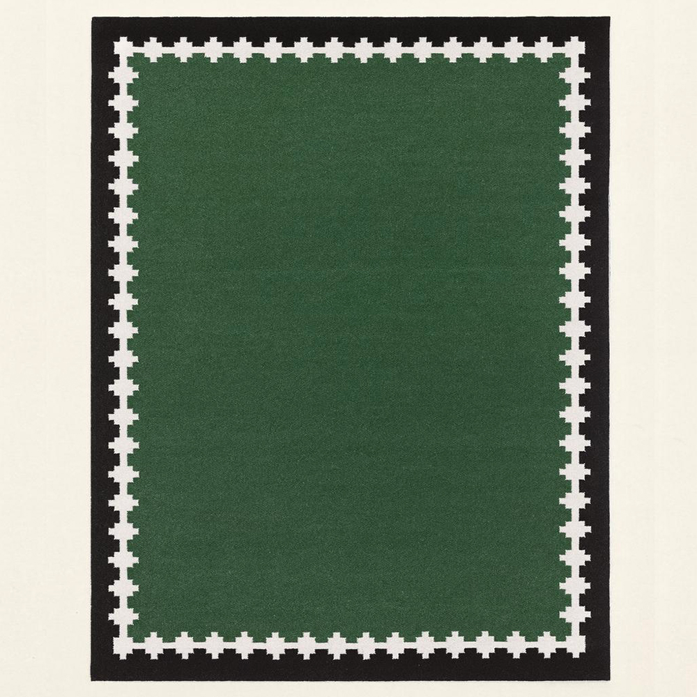 This green cotton dhurrie is a celebration of minimalist, oriental artistry. It creates an inviting atmosphere, perfect for thoughtful gifters, passionate decorators and discerning collectors.