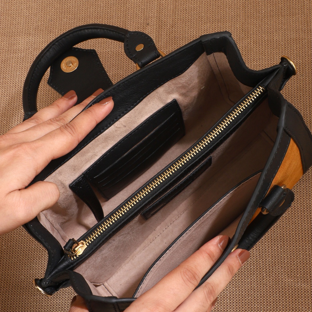 Crafted in gorgeous Hazel and Charcoal leather, this sling/crossbody has a magnetic loop closure, combining ease and elegance. Though petite, the Little Serena offers ample space for your mobile phone, wallet, and a touch of make-up, making it ideal for both day-to-day activities and special occasions.