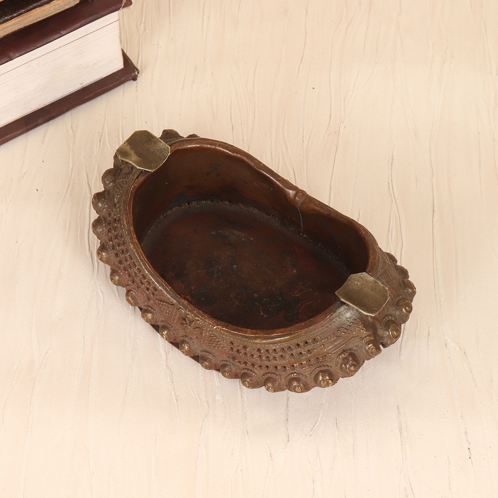 Elevate your smoking experience with this stunning vintage brass ashtray. Crafted from solid brass, this ashtray boasts a rich, gleaming finish and ornate engraved patterns that evoke the sophistication of a bygone era. Whether you're enjoying a quiet moment alone or entertaining guests, this ashtray is sure to command attention and spark conversation. But this ashtray isn't just a pretty face. Its substantial size and weighted base provide exceptional stability, ensuring it stays firmly in place even with frequent use. The generous capacity allows you to comfortably accommodate multiple cigarettes or cigars, minimizing the need for frequent emptying. And the durable brass construction can withstand the test of time, guaranteeing years of enjoyment and use. The timeless design of this vintage brass ashtray means it will seamlessly integrate with a variety of decor styles, from classic to contemporary. It's the perfect accessory for the discerning smoker who appreciates quality craftsmanship and timeless style. Invest in a piece that will become a cherished part of your smoking routine and a conversation-starting centerpiece in your home or office.
