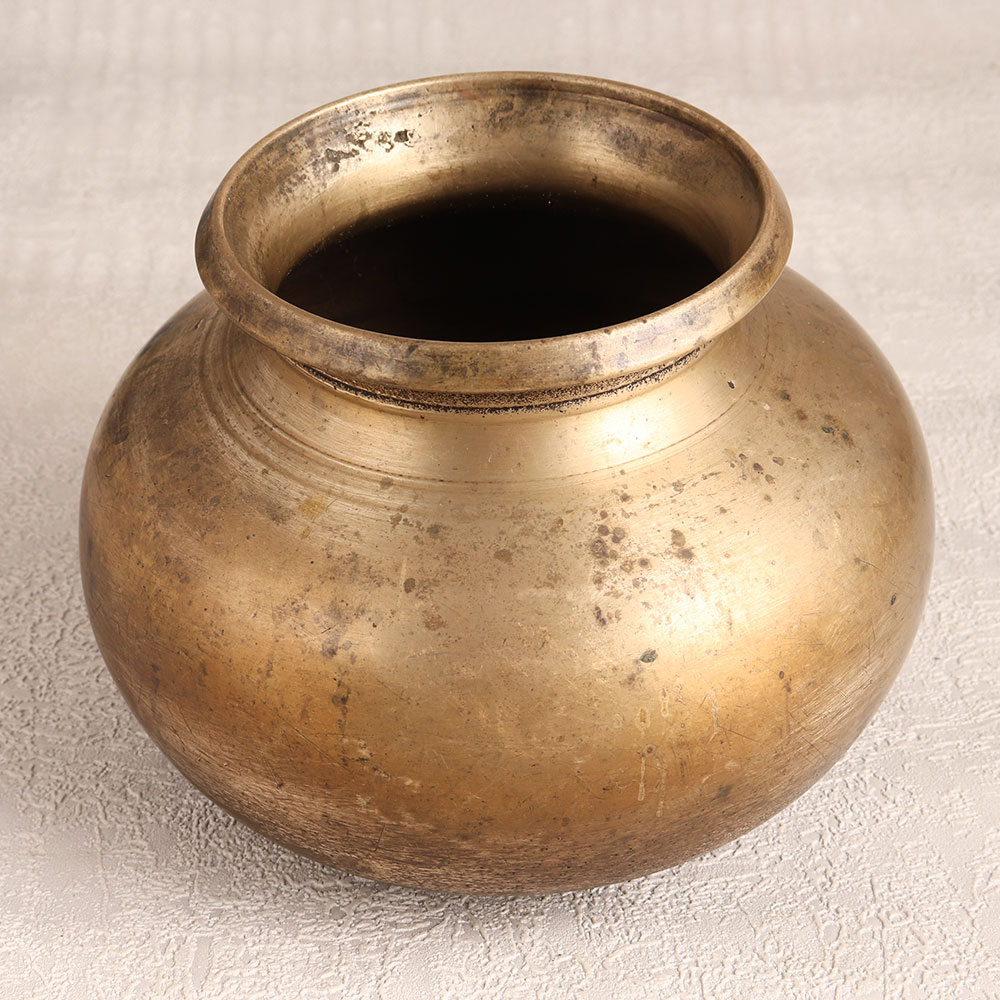 Buy a vintage brass cooking pot online and get a hassle free delivery right at your doorstep. Handcrafted by highly skilled artisans from the heart of Gujarat, India, this exquisite piece is a testament to their artistry and passion for preserving traditional techniques. Crafted with the utmost care and precision, this brass pot boasts an antique brown finish that adds a touch of rustic charm to any setting. Its enduring beauty makes it a versatile decor choice for homes, offices, hotels, cafes, shops, and restaurants. While it once served as a utilitarian vessel for culinary delights, we advise against using it for cooking today. Instead, this vintage brass pot finds a new purpose as a striking flower pot, bringing nature's beauty to your space. It also makes a captivating addition to any vintage collection, ideal for display at exhibitions or collector's showcases. Whether for yourself or as a gift for your family, friends or relatives on special, festive, or auspicious occasions, this vintage brass cooking pot is a piece of history that transcends time.