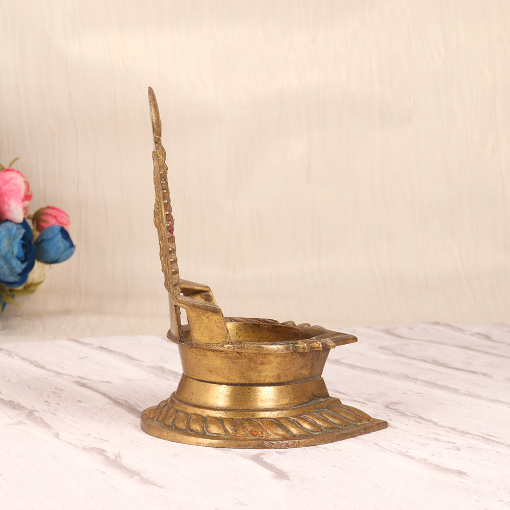 Ignite your sacred rituals with the captivating Vintage Brass Gajlaxmi Oil Lamp, a stunning addition to your spiritual sanctuary. Crafted with meticulous attention to detail, this exquisite piece celebrates the rich cultural heritage of India and the enduring symbolism of the Gajlaxmi. The Gajlaxmi, the goddess of wealth and fortune, is revered in Hindu tradition as a beacon of abundance and divine blessings. By incorporating this captivating design into your sacred space, you invite the energies of prosperity and protection to flow through your life, elevating your spiritual practice and infusing your home with a sense of timeless elegance. Whether you're a seasoned practitioner or new to the world of sacred rituals, the Vintage Brass Gajlaxmi Oil Lamp is the perfect companion. As the soft light of the oil lamp dances across the brass surface, it creates a mesmerizing ambiance that invites you to pause, reflect, and connect with your innermost self. Ignite your spiritual journey, honor your ancestors, and cultivate a deeper sense of abundance and well-being with this extraordinary piece.