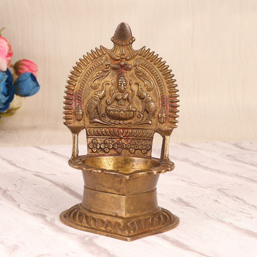 Elevate your spiritual practice and infuse your space with the captivating glow of the Vintage Brass Gajlaxmi Oil Lamp. Crafted with meticulous attention to detail, this stunning piece blends time-honored tradition with modern functionality, creating a mesmerizing centerpiece for prayer, ritual, and meditation. As the flickering flame dances, it will draw your focus inward, guiding you on a journey of self-reflection and connection. Whether you're performing daily puja, observing sacred rituals, or simply seeking a moment of peaceful contemplation, this lamp will become an invaluable companion on your spiritual path. Invite the blessings of the Gajlaxmi goddess into your home and create an atmosphere of reverence, abundance, and divine feminine energy. The Vintage Brass Gajlaxmi Oil Lamp is a timeless treasure that will elevate any space, adding a stunning touch of tradition and timeless elegance. Embrace the power of ritual and let this captivating lamp be your gateway to deeper spiritual awareness and growth.