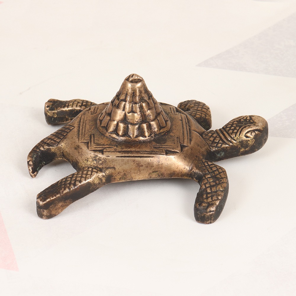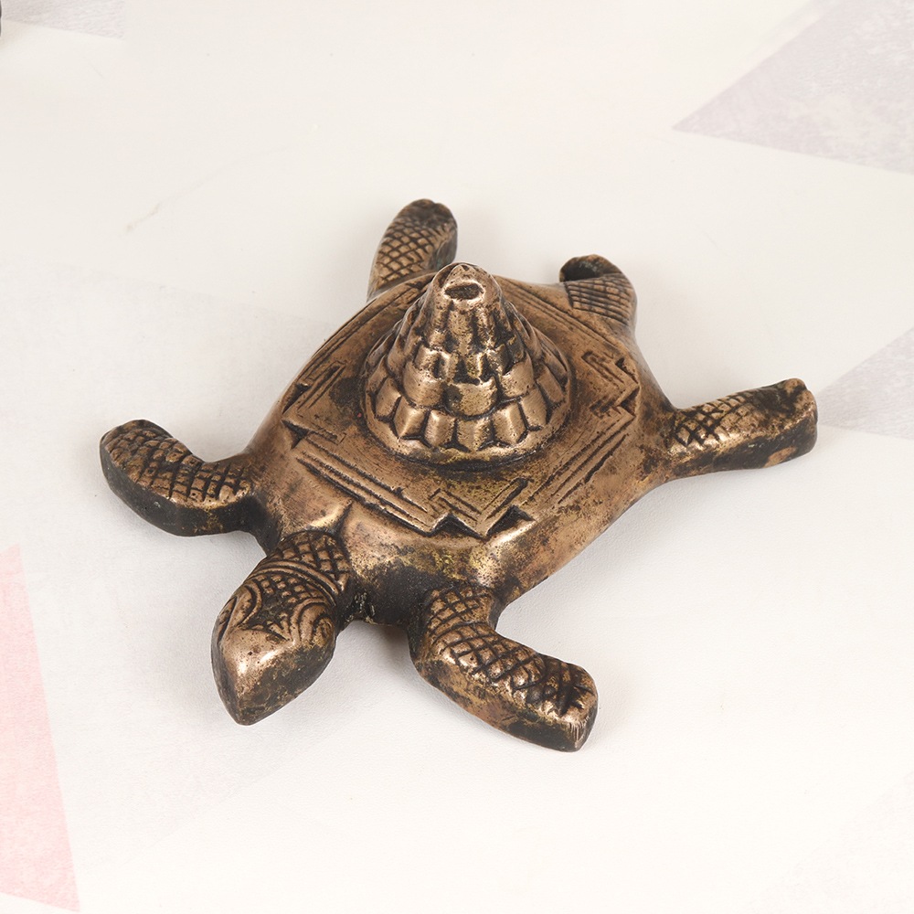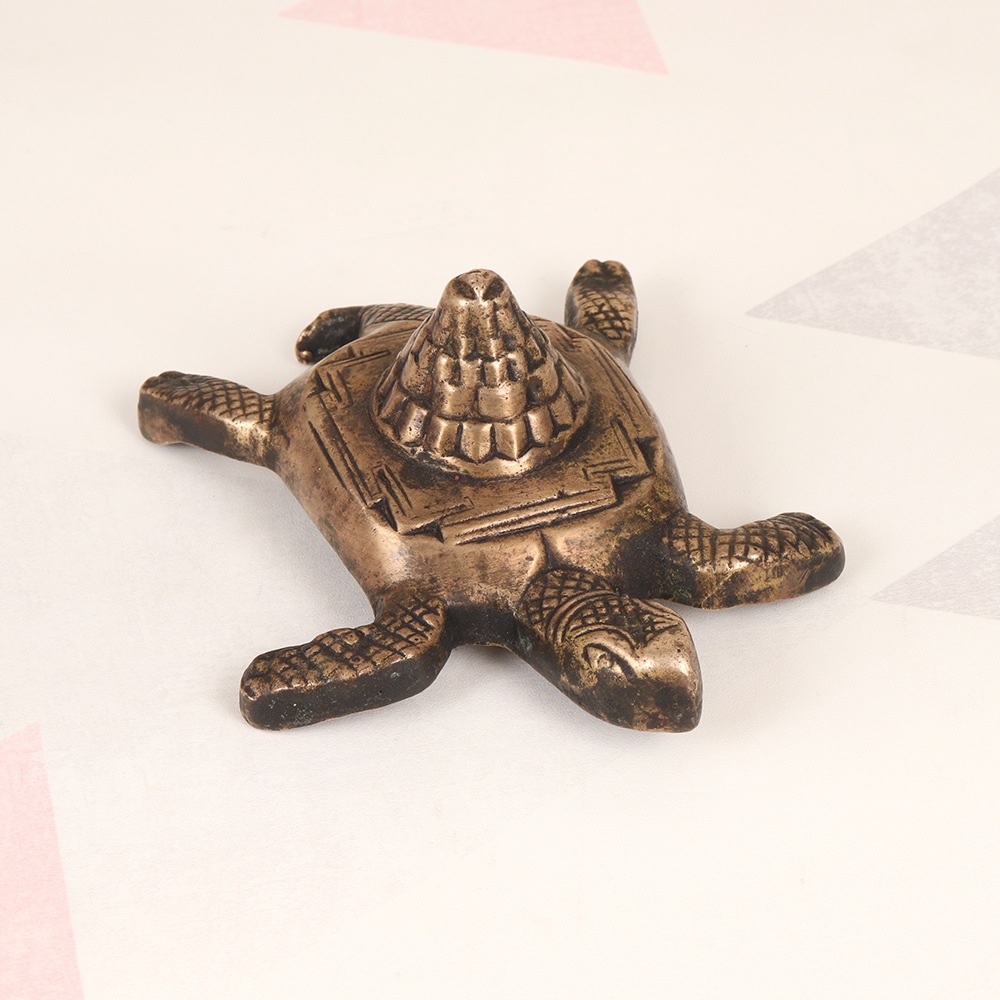 Discover the transformative power of the Lakshmi Turtle Yantra, a stunning vintage brass creation that combines the revered goddess Lakshmi with the auspicious symbol of the turtle. This exquisite piece is a masterful fusion of ancient spiritual wisdom and timeless artistry, designed to infuse your life with the blessings of abundance, prosperity, and spiritual enlightenment. As the goddess of wealth and fortune, Lakshmi's presence is believed to attract positive energy and open the doors to financial stability, success, and fulfillment. By welcoming this captivating yantra into your sacred space or home, you invite her divine grace to permeate your surroundings, aligning you with the flow of abundance and good luck. The turtle, a symbol of longevity and stability, represents the steady foundation upon which Lakshmi's blessings can take root and flourish. With this magnificent yantra at the center of your meditative practice or on your altar, you'll embark on a transformative journey of self-discovery and spiritual growth, empowered by the timeless wisdom and positive energy it radiates. Whether you choose to use the Lakshmi Turtle Yantra as a tool for meditation, a centerpiece for your altar, or a stunning work of art to grace your home, its mesmerizing design and high-quality craftsmanship will elevate the energy of any space, infusing it with the benevolent presence of the goddess and the auspicious symbolism of the turtle.