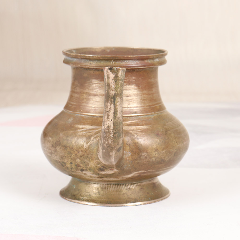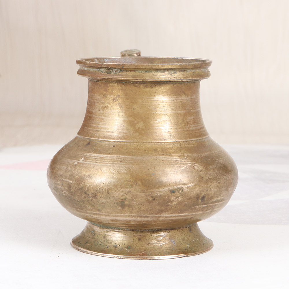 Immerse yourself in the rich cultural heritage of South India with this captivating vintage brass holy water pot. Crafted with meticulous attention to detail, this elegant vessel seamlessly blends traditional design with a refined, modern aesthetic, making it a stunning addition to any sacred space. Elevate your daily rituals with the wisdom-infused energy of this holy water pot. Its simple yet striking appearance creates an atmosphere of reverence, inviting you to slow down, reflect, and connect with the divine. Whether you're performing ablutions, offering prayers, or blessing your home, this vessel will become an indispensable part of your spiritual routine. Designed to withstand the test of time, this brass pot is a testament to the enduring craftsmanship of South Indian artisans. Its timeless elegance will inspire you to cultivate a deeper sense of mindfulness and appreciation for the sacred in your everyday life. Unlock the wisdom of ancient tradition and bring a touch of grounding, transformative energy to your spiritual practice with this exquisite holy water pot.