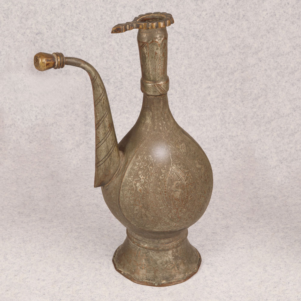 Buy a Vintage Copper Aftaba Pot online which is a timeless masterpiece handcrafted by skilled Indian artisans steeped in the rich traditions of Islamic Art. This piece showcases the artistry of a bygone era, meticulously designed with a spout and adorned with intricate engravings, creating a harmonious blend of functionality and aesthetics. Crafted from high-quality copper, this Aftaba pot boasts an antique brown finish that lends an air of nostalgia and sophistication. Its unique design makes it a versatile decorative piece suitable for various settings, including homes, offices, restaurants, hotels, or cafes. Elevate your space with the charm of this vintage creation, as it seamlessly complements diverse interior styles. Not only does this pot serve as a striking addition to your vintage collection, but it also makes for a thoughtful and meaningful gift. Share the beauty of craftsmanship and history with your family, friends or relatives on special, festive, or auspicious occasions.