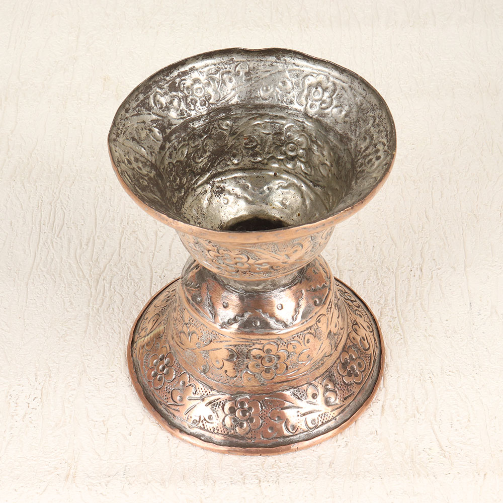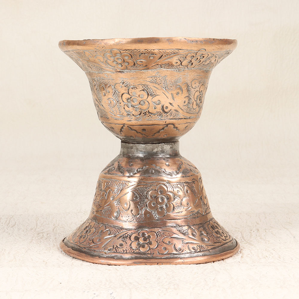 Add a touch of antique charm to your home with this hand-engraved copper flower pot. Featuring Islamic floral engravings, this stunning pot will elevate any decor. This copper flower pot adds striking elegance with hand-engraved artwork. The delicate motifs reflect generations of artisanal traditions passed down in Hyderabad. Place your favorite blooms in this pot to display their beauty against the warm antique copper. For those seeking an ornate statement piece, this engraved copper pot delivers old-world allure. The intricate details will impress guests and accent your home with vintage flair. With its mesmerizing artwork, this flower pot is ideal for anyone looking to infuse their decor with antique copper charm.