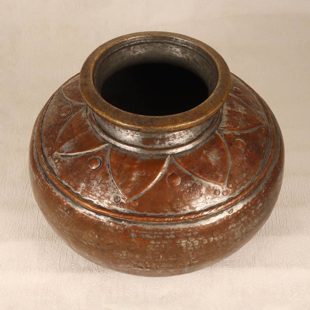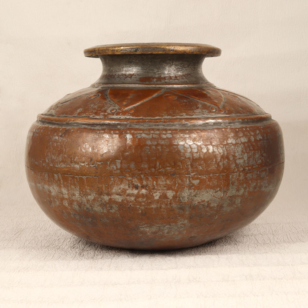 Enhance your living or working space with the timeless allure of our Vintage Copper Pot that is a masterpiece crafted by skilled Indian artisans in the exquisite tradition of Islamic Art. This enchanting piece is a celebration of heritage, showcasing the artisan’s expertise in transforming high-quality copper into a work of functional art. Adorned with intricate engravings that tell tales of craftsmanship and history, the pot boasts an antique brown finish, lending an air of sophistication and charm. Whether gracing your home, office, restaurant, hotel, or cafe, this handmade copper pot transcends its utilitarian purpose. Its versatile design allows it to be repurposed as an indoor flower pot, adding a touch of nature to your surroundings. Furthermore, it effortlessly integrates into any vintage collection, becoming a focal point of admiration. Beyond its aesthetic appeal, this copper pot serves as a thoughtful gift for your family, friends or relatives during special, festive, or auspicious occasions. Each pot is not just an object; it's a testament to the rich cultural heritage and the skilled hands that bring it to life.