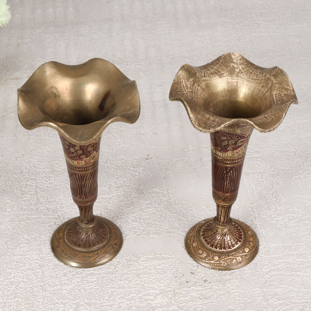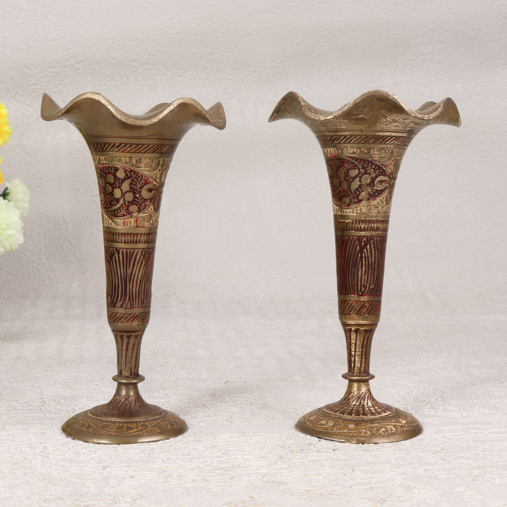Enhance your interior with this exquisite set of 2 vintage brass flower pots, each a testament to the timeless artistry of Islamic craftsmanship. Meticulously handcrafted by skilled artisans, these pots showcase intricate engravings that reflect the rich heritage of Islamic art. The antique brown finish adds a touch of nostalgia, creating a warm and inviting ambiance. Made from high-quality brass, these flower pots are not just decorative but also durable. Their versatile design makes them suitable for various settings – adorn your home, office, restaurant, hotel, or cafe with a touch of vintage charm. These pots serve as an ideal indoor flower arrangement, blending seamlessly with any decor style. A perfect addition to your vintage collection, these flower pots make for thoughtful gifts on special, festive, or auspicious occasions. Whether displayed individually or as a pair, the vintage allure of these handmade treasures is sure to captivate and inspire admiration.