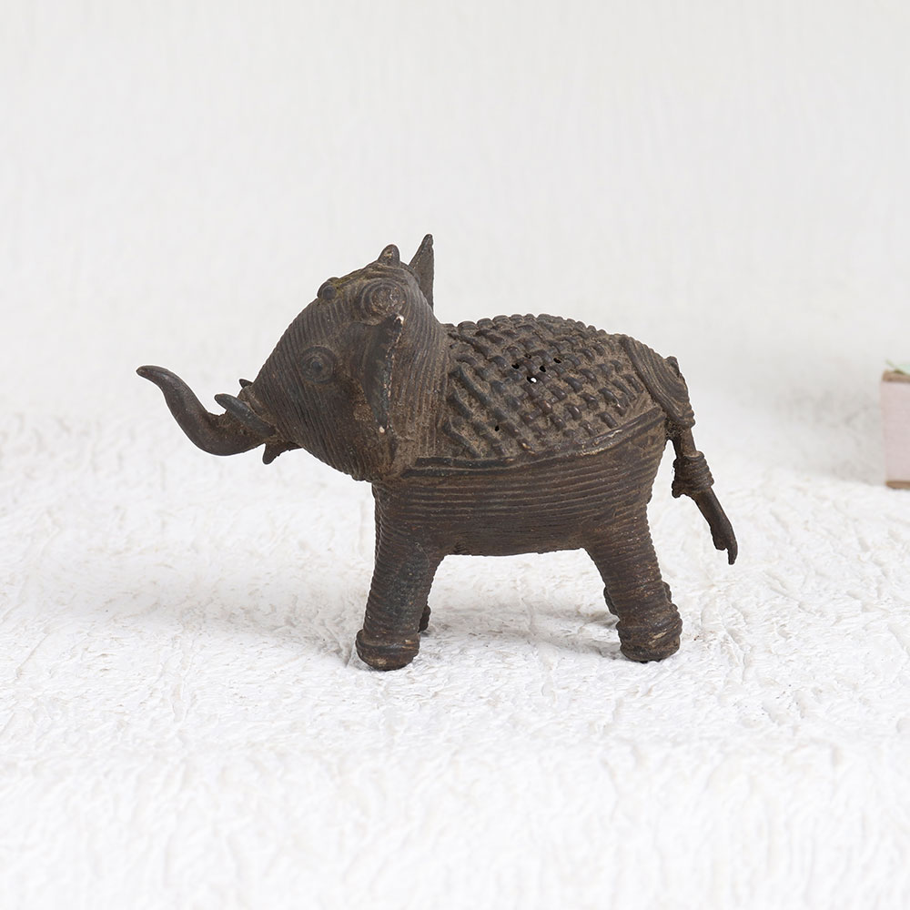 Immerse yourself in the timeless elegance of this brass elephant statue adorned with intricate jali work and finished in a rich antique brown hue. Crafted with meticulous attention to detail, this masterpiece is the result of the skilled craftsmanship of Indian artisans who have honed their craft through generations. Standing as a symbol of strength, wisdom, and grace, this brass elephant adds a touch of cultural heritage and artistic beauty to any space. Whether you choose to display it in your home, office, restaurant, hotel, cafe, or shop, it effortlessly enhances the ambiance with its majestic presence. This versatile piece isn't just a stunning decor element, it's also a conversation starter and a perfect addition to your vintage collection or exhibition. Its cultural significance and timeless design make it a thoughtful and meaningful gift for your family, friends or relatives on special, festive, or auspicious occasions, conveying your appreciation and best wishes.