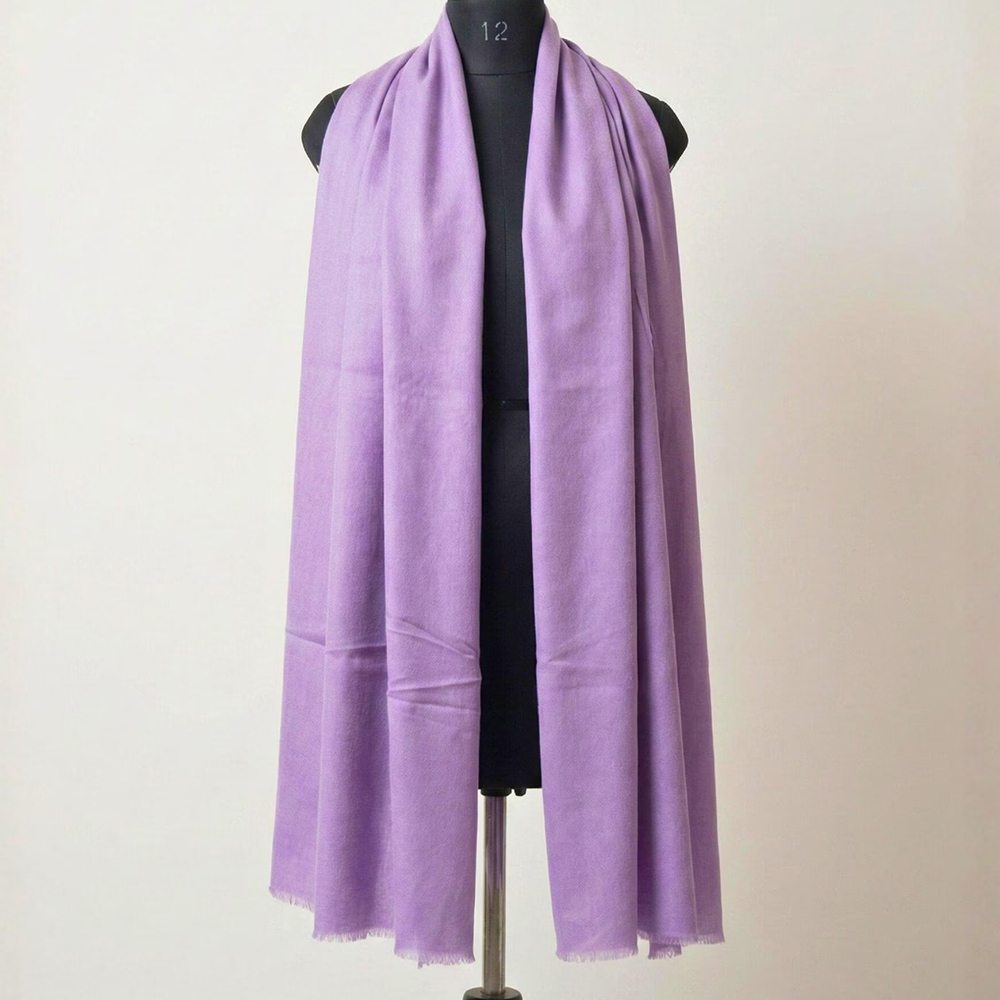 This handcrafted Kashmiri stole is woven in a refined woolpolyester blend, offering a harmonious balance of softness, warmth, and fluid drape. Finished in a delicate lavender hue, the stole reflects Kashmirs tradition of understated elegance, making it a timeless accessory for both contemporary and classic wardrobes.