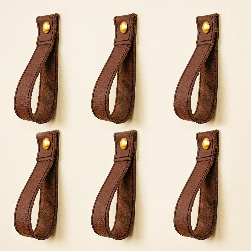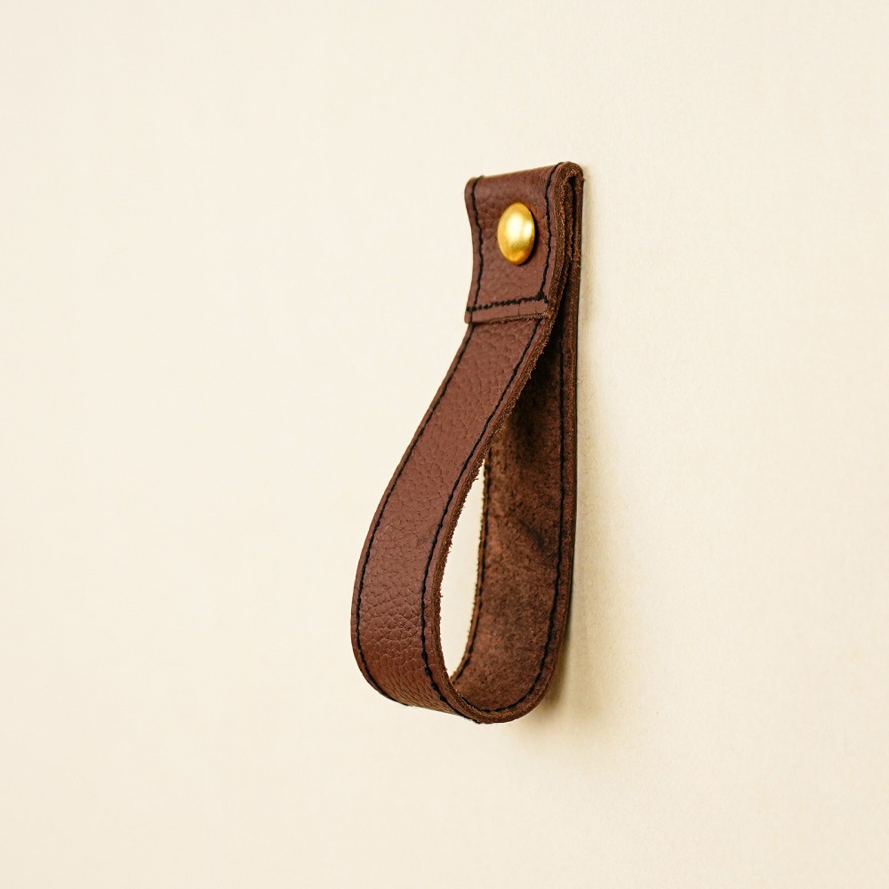 Upgrade your furniture with this elegant dark brown leather loop pull, crafted for both function and design. Made from premium-quality genuine leather, this loop handle features a rich texture and is secured with a solid brass rivet, offering a rustic yet contemporary touch.Perfect for cabinets, wardrobes, drawers, or dresser units, its soft grip and durable stitching ensure long-lasting use while enhancing the aesthetic of minimalist, vintage, or Scandinavian interiors. Easy to install and a stylish alternative to traditional knobs or handles, this leather pull adds a warm, handmade charm to any space.
