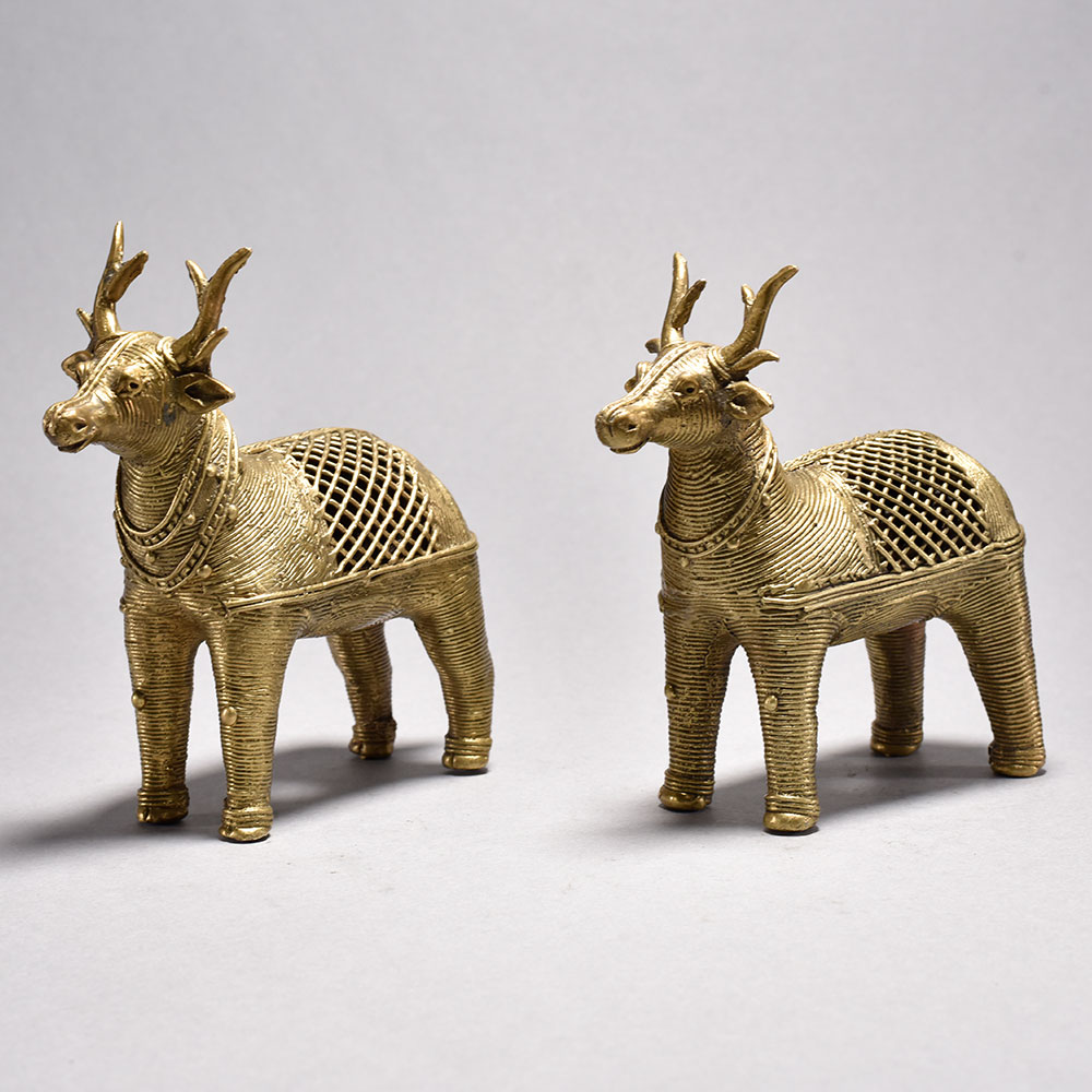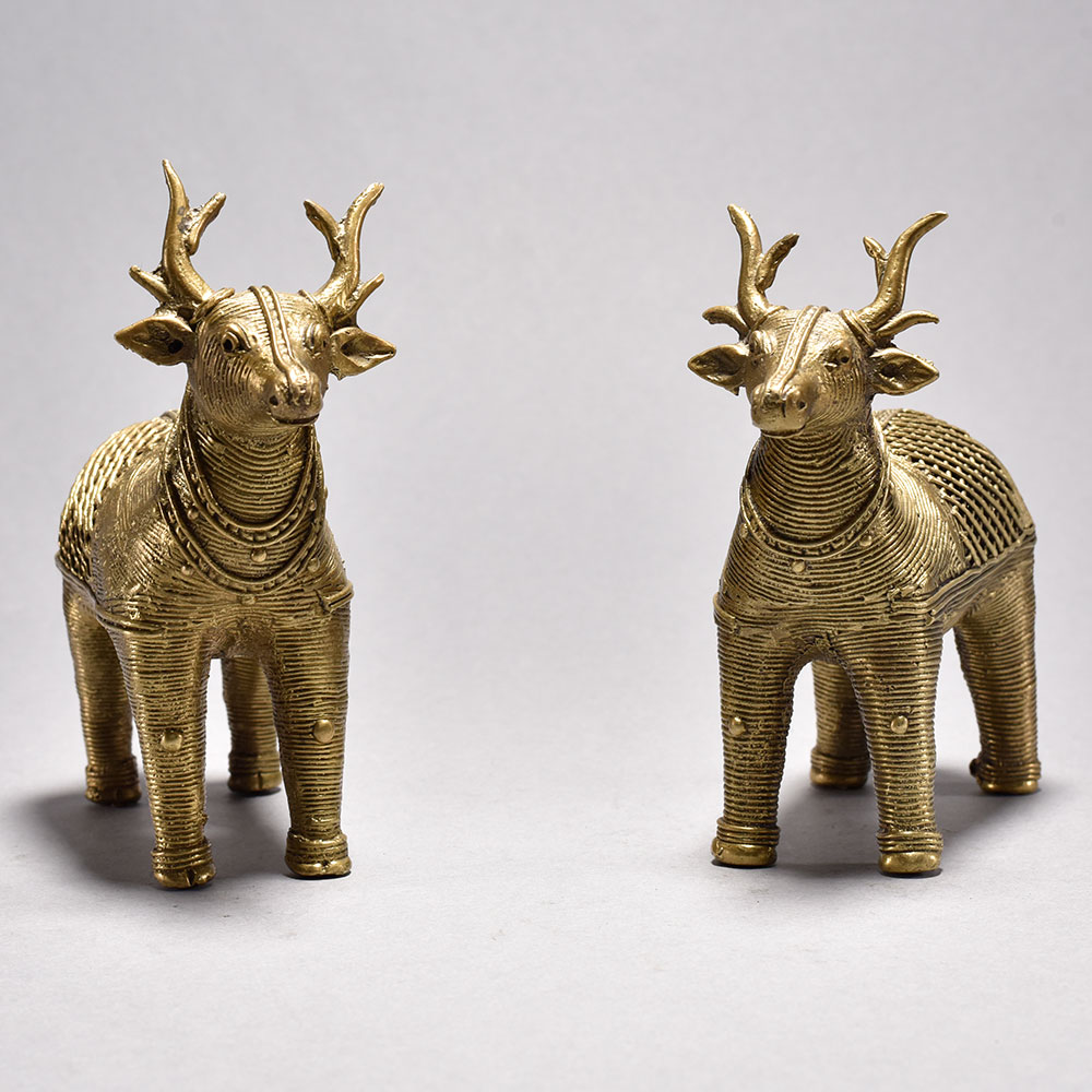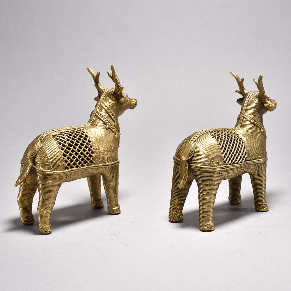 Handmade Metal Dhokra Deer Statue in Pair