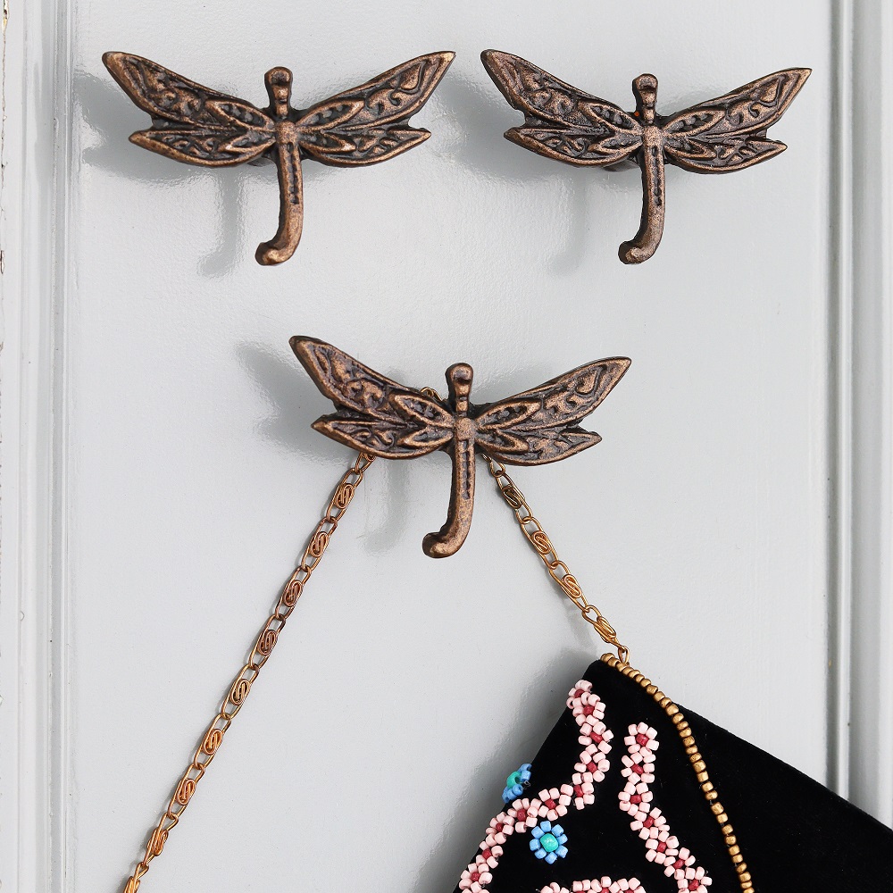 Antique Dragonfly Iron Wall Hooks-3 Pieces. This Hook is Strong Enough to Hold Your Bags, Hand Towels, Cloths Etc.