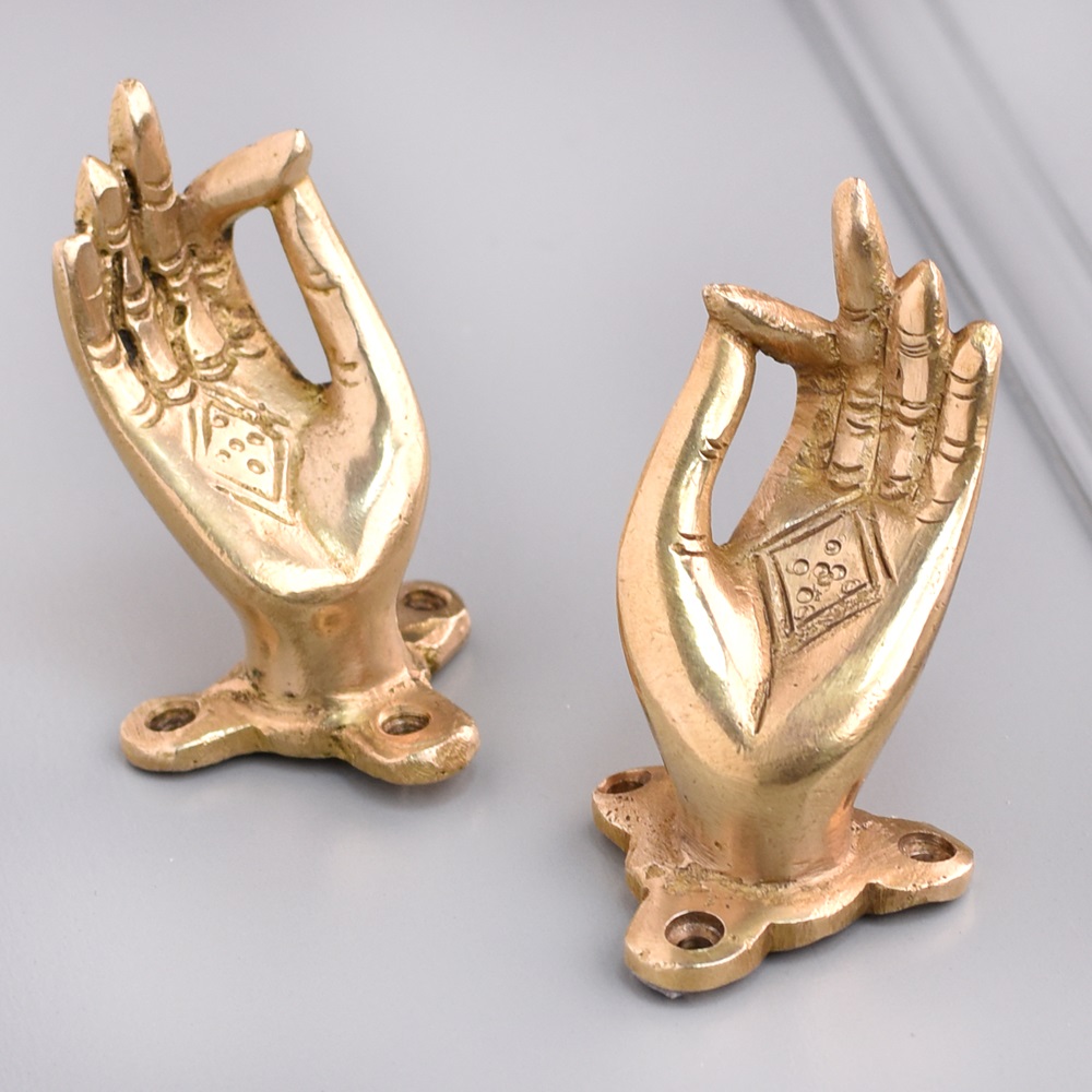 Introduce a unique blend of tradition and sophistication with the Handmade Mudra Brass Drawer Handle in Golden Finish. This exquisitely crafted drawer handle draws inspiration from ancient Mudra hand gestures, which symbolize peace, strength, and harmony. Its golden finish imparts a timeless, luxurious appeal, making it a perfect choice for elevating your furniture with a touch of cultural elegance.
