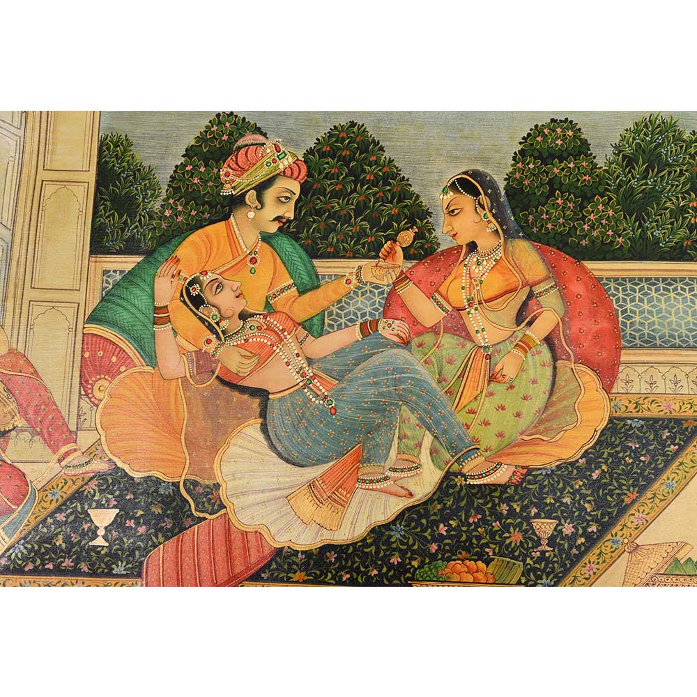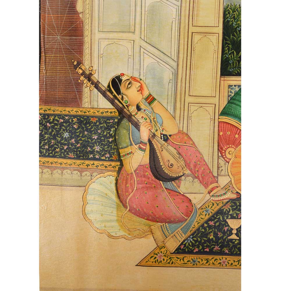 This handmade Mughal Canvas painting wall decoration showpiece will help enhance the beauty and charm of your decoration. Great gift for your loved ones on anniversaries, birthdays, Diwali, and New Year.