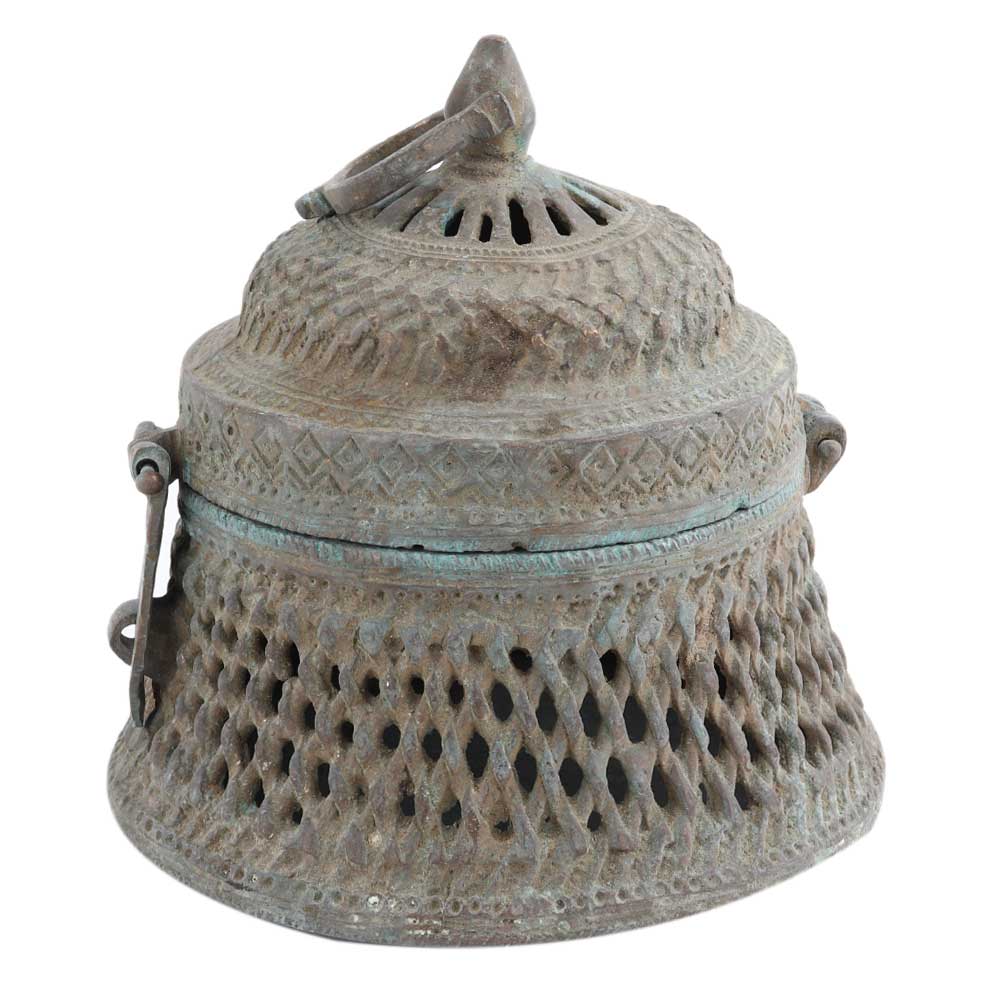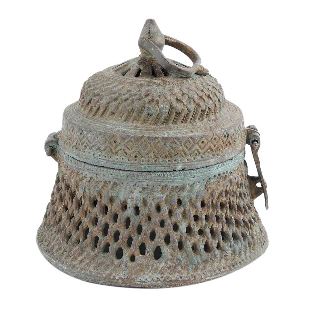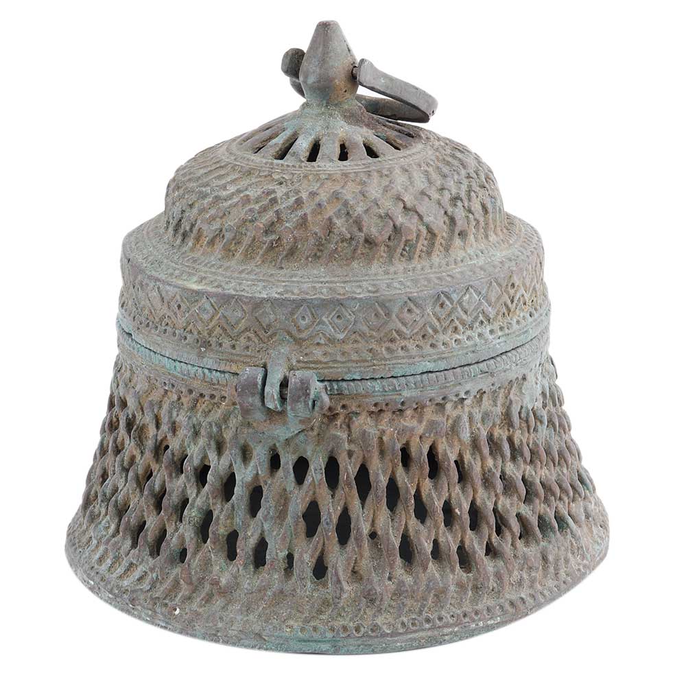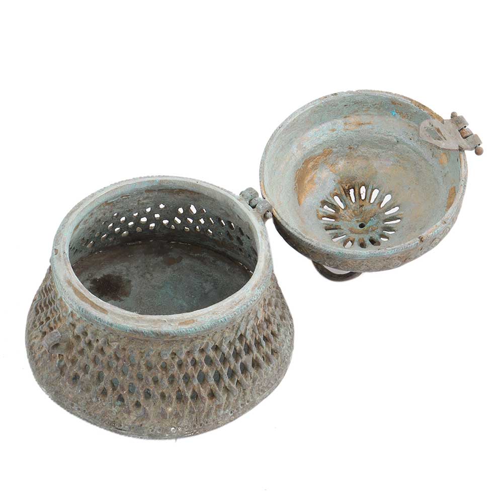 A round brass storage box with a beautifully carved jali design and made by skilled Indian craftsmen. It comes with a lid for the safe storage of valuables. It can be used to store small daily necessities. It was great for friends and relatives. It has a traditional and antique look that is sure to add value to the atmosphere of your home.