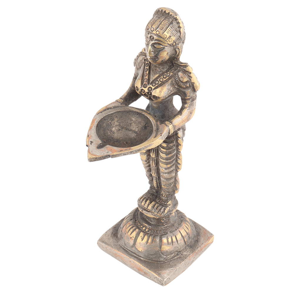 This classic brass dancing lady statue holding a diya made by expert artisans comes in a raw antique finish. You can gift this statue at anniversaries, weddings, thanksgiving, Diwali, or other religious functions.