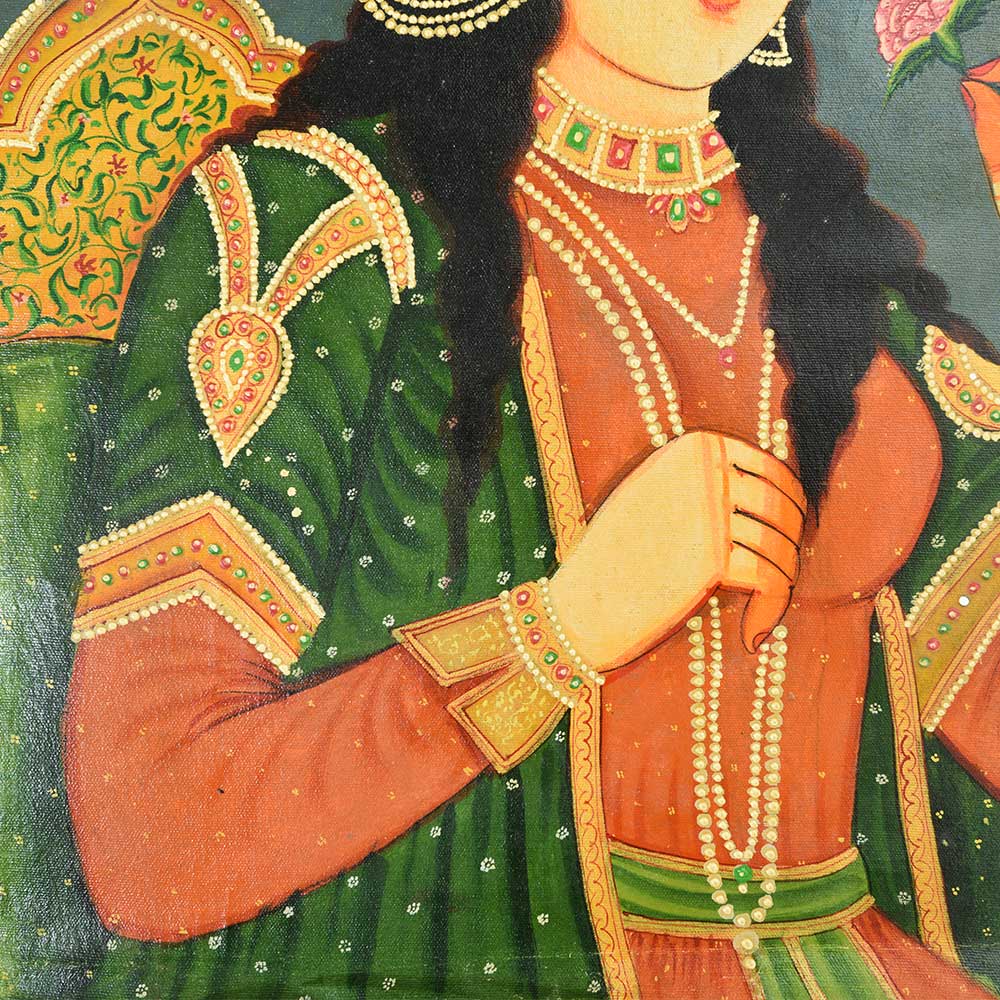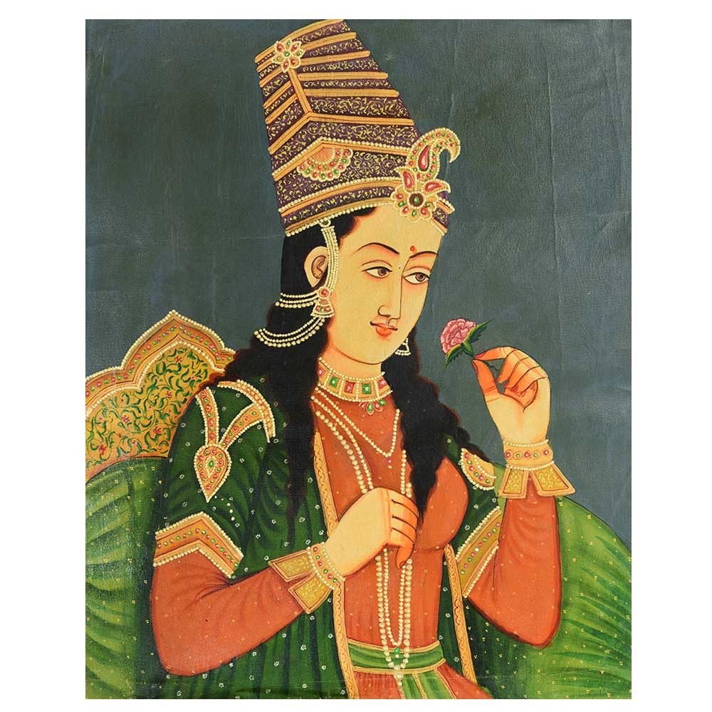 The handmade painting of the Mughal empress has a timeless appeal and is an excellent way to bring colour and charisma to your home's décor. Its rich colours and subject have the potential to appeal to the senses of beauty.
