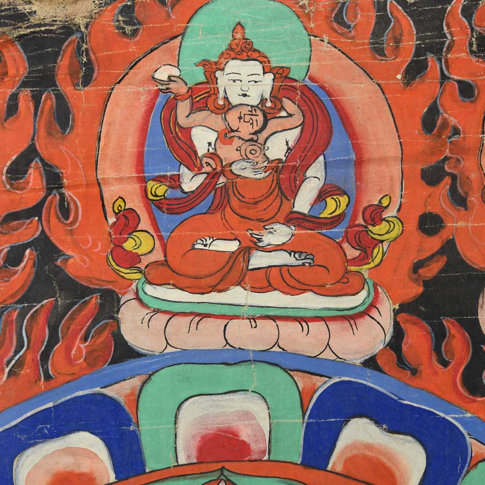 Vajrasattva with Consort Brocade Thangka Painting is ideal as a living room, bedroom, or office wall decoration. It's also a thoughtful present for yourself, a friend, family, or a loved one.