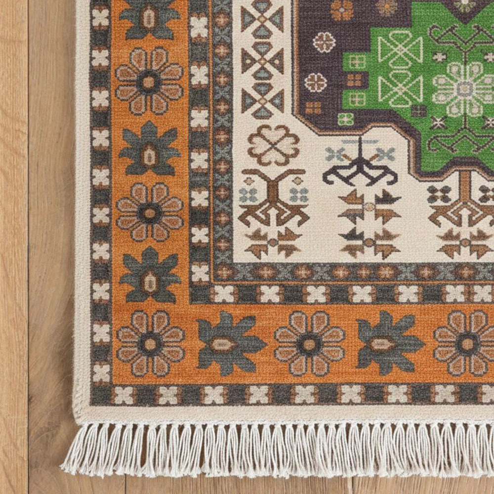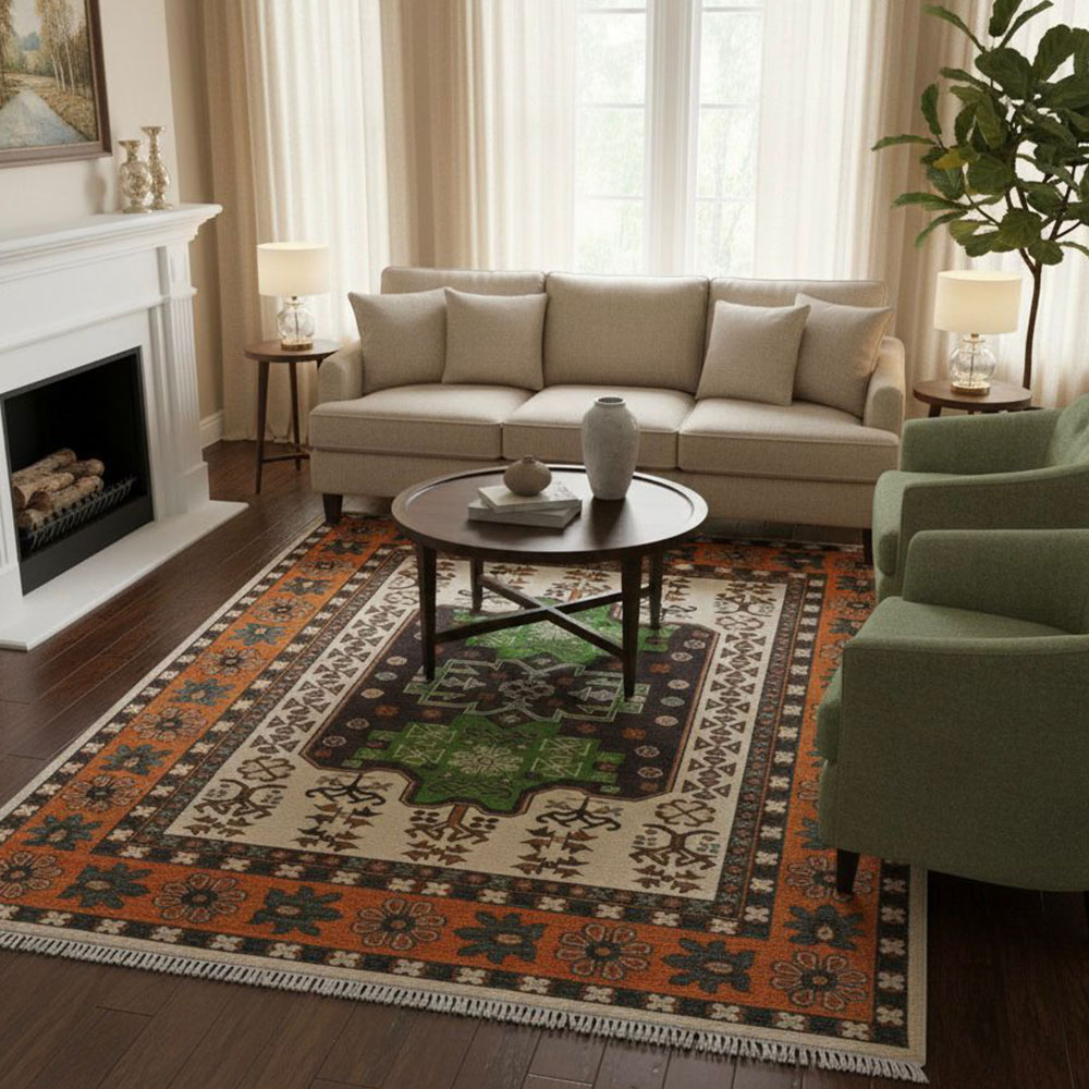 High quality dyes and natural fibers ensure that the colors remain vibrant and true over time. The rug is designed to resist fading, so its hues stay rich even with regular use.