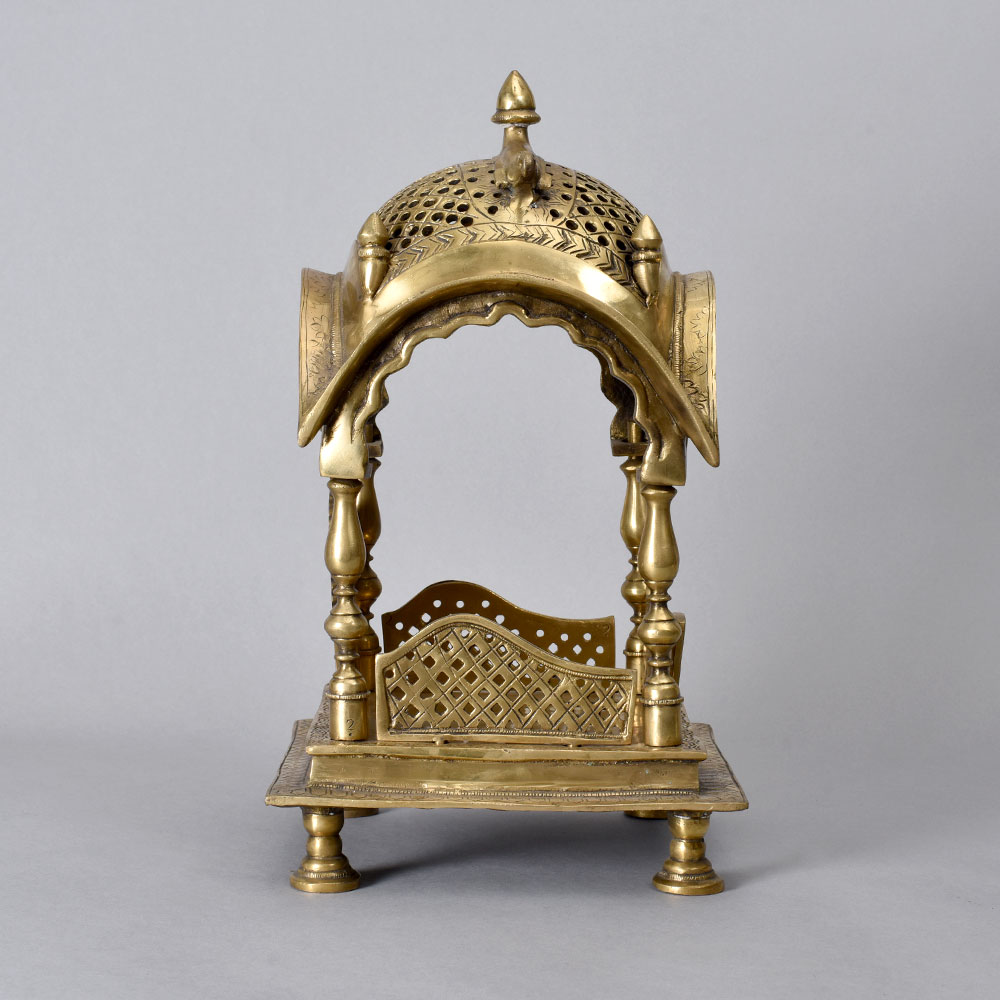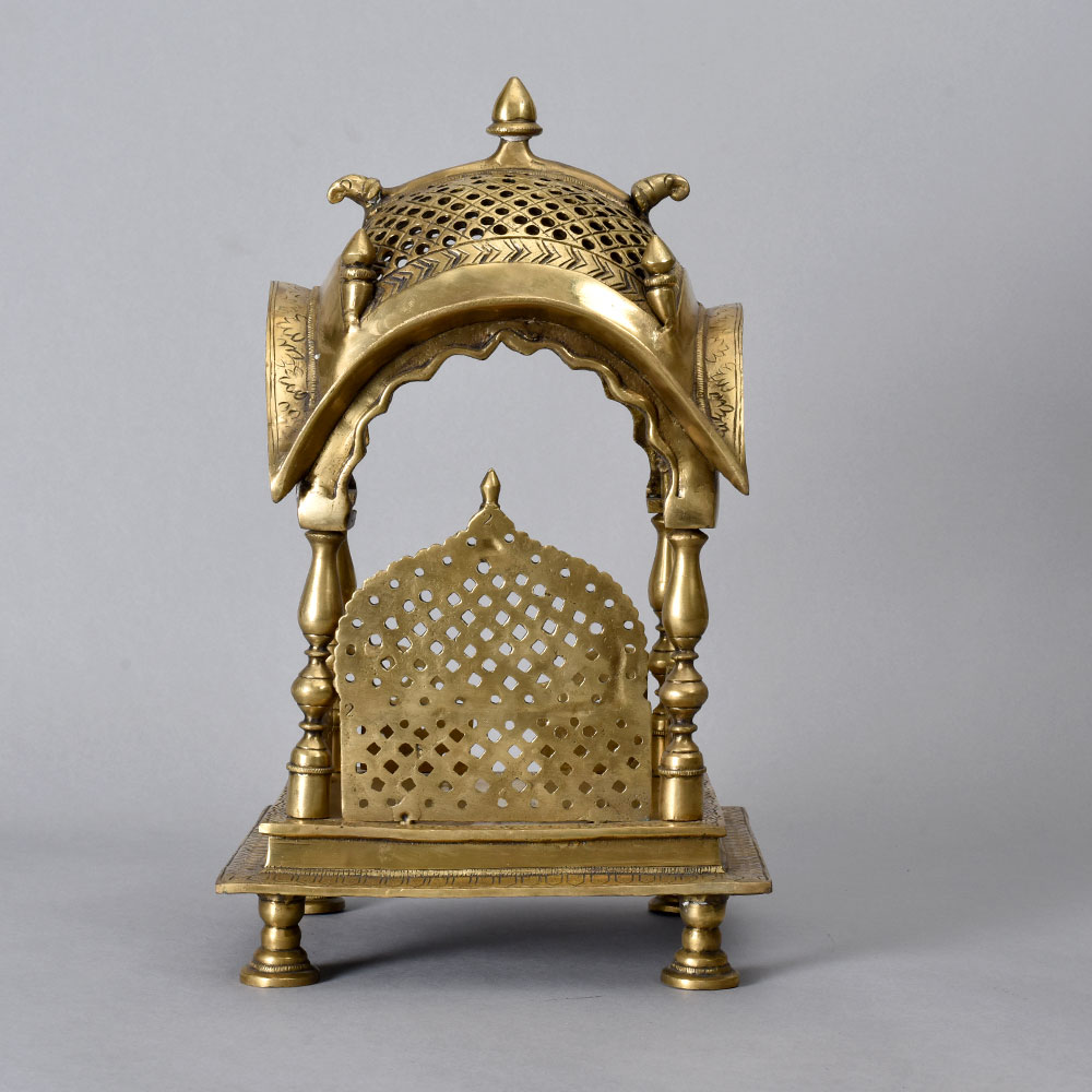Step into a realm of sacred wonder with this exquisite vintage brass temple from Northern India. Meticulously crafted by skilled artisans, this piece radiates an aura of timeless spirituality that will captivate and inspire. The solid brass construction is adorned with intricate engravings, each one a testament to the rich cultural heritage of the region. Whether displayed in your living room, meditation space, or office, this temple will serve as a stunning focal point, evoking the serene atmosphere of ancient places of worship. Its presence will fill your space with a sense of grounding, peace, and connection to something greater. Use it as a centerpiece for your spiritual practice, light candles around it, or simply gaze upon it to find respite from the stresses of daily life. This vintage brass temple is the perfect addition for those seeking to infuse their environment with the sacred energy of India's spiritual traditions. Invite the mysticism of the East into your home and allow its timeless beauty to elevate your daily experience. Discover the profound impact of this remarkable piece and let it become a cherished part of your life.