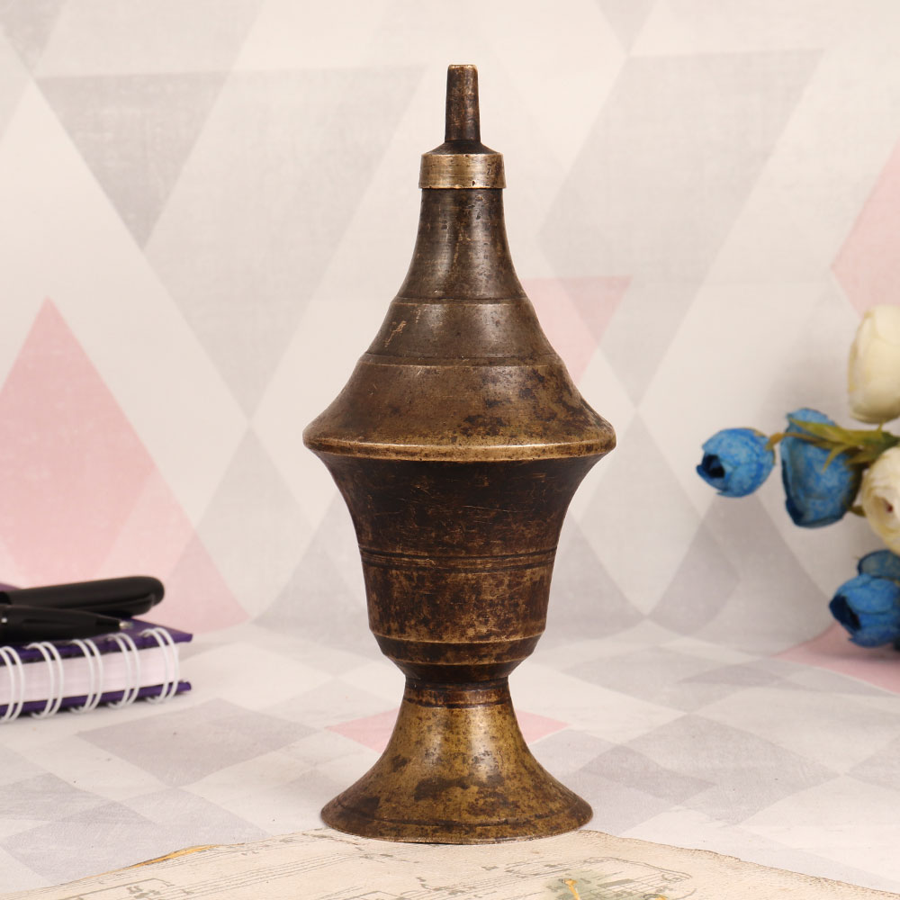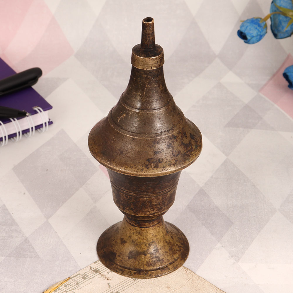 Enhance your interior decor with the timeless elegance of our Brass Oil Lamp Base in a rich antique brown finish. Handcrafted by highly skilled and experienced Indian craftsmen with meticulous attention to detail, this exquisite piece is a testament to the enduring craftsmanship of the subcontinent. Crafted from high-quality brass, this lamp base exudes an air of sophistication and authenticity that is sure to captivate any onlooker. Its versatility is a hallmark feature, making it an ideal addition to various settings, including your home, office, restaurant, hotel, cafe, or shop. Place it on a mantelpiece, table top, or any prominent surface to instantly elevate the ambiance. Whether you're a collector with an affinity for vintage pieces or an exhibitor looking to make a statement at your next showcase, this lamp base will steal the spotlight. Its classic design is reminiscent of a bygone era, making it a conversation starter and a piece of history in itself. Moreover, it serves as a thoughtful gift for your family, friends or relatives on special, festive, or auspicious occasions, symbolizing not only your appreciation for their presence but also the enduring beauty of Indian craftsmanship.
