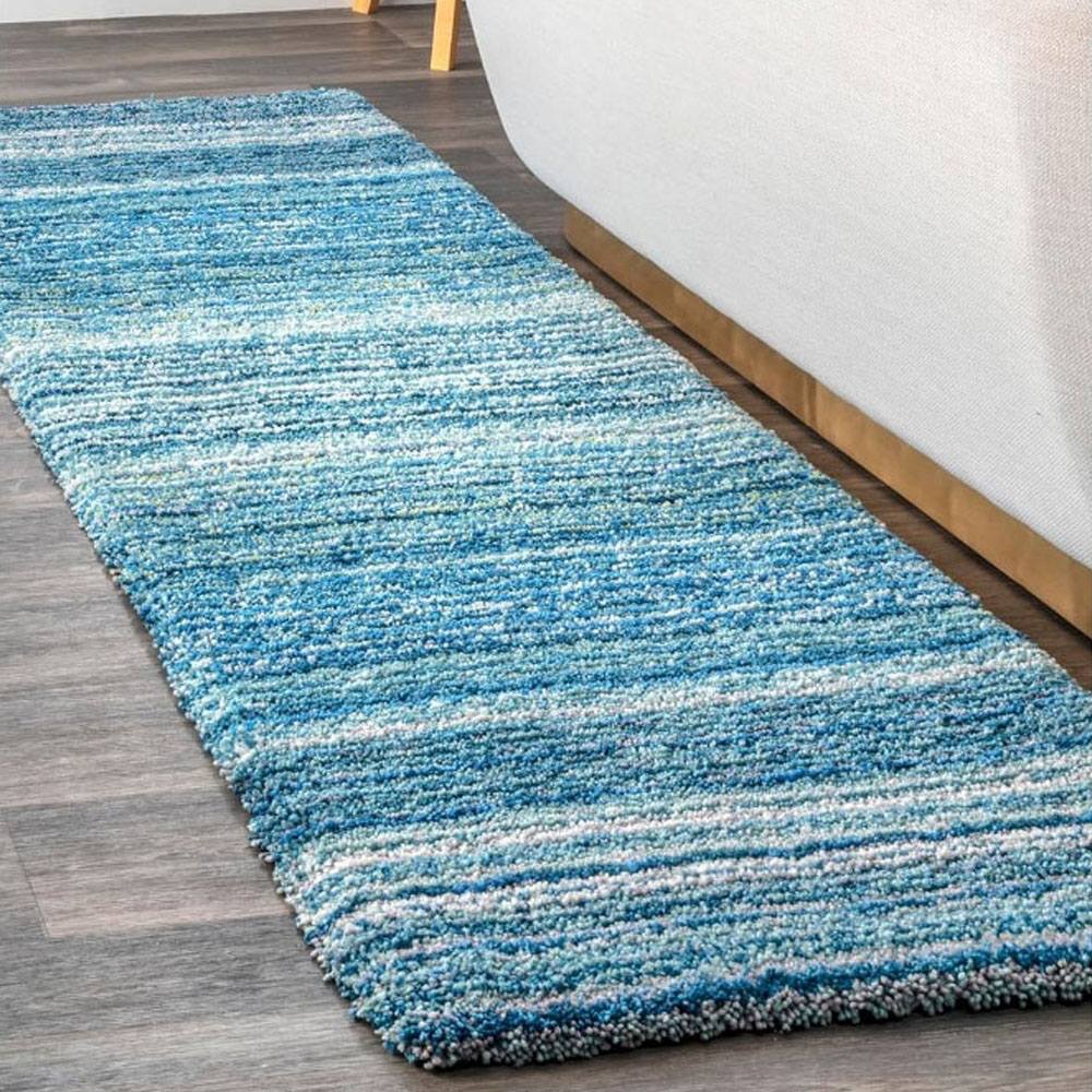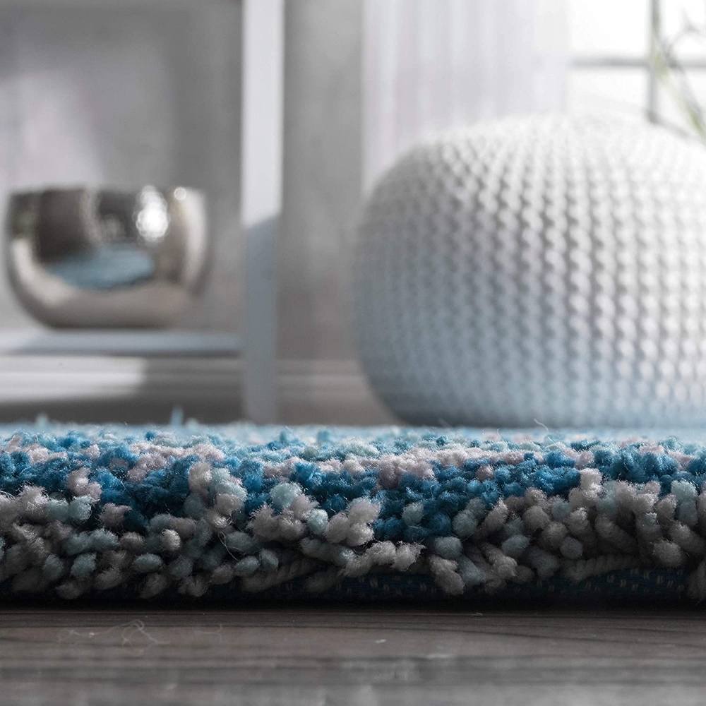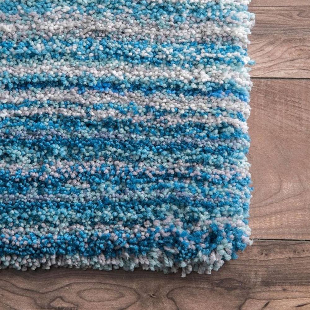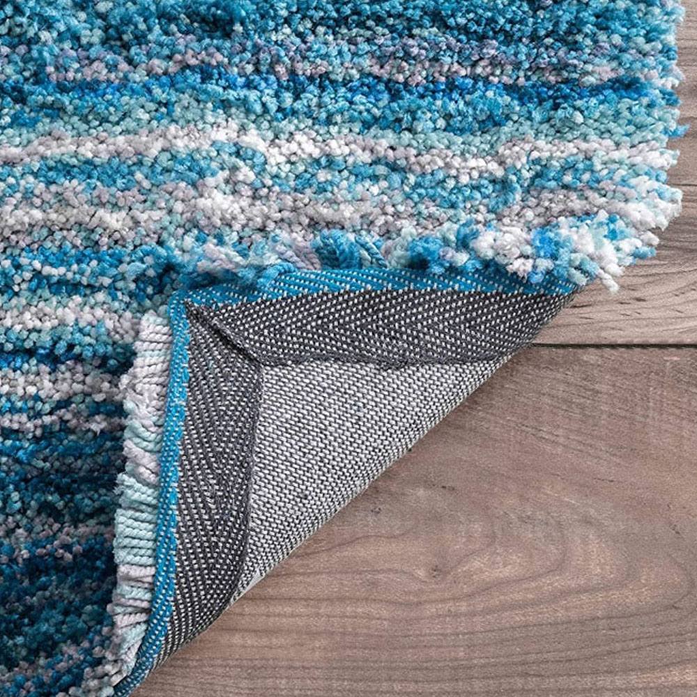 This Sky Blue Multicolor shaggy rug, handcrafted from ultra-soft microfiber, adds a refreshing burst of color and comfort to your interiors. Featuring subtle gradient tones of blue, white, and teal, it captures the calm of ocean waves in textile form. Each rug is handmade, packed, and quality-checked by Indianshelf artisans for lasting elegance.