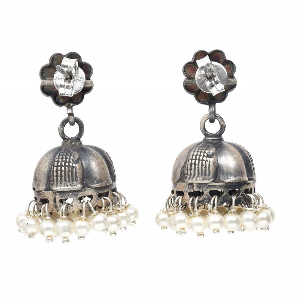 Elegant oxidized silver Indian Jhumki earrings in timeless classic design. These traditional Jhumkis earrings will complement any occasion ethnic, daily, university and casual wear.