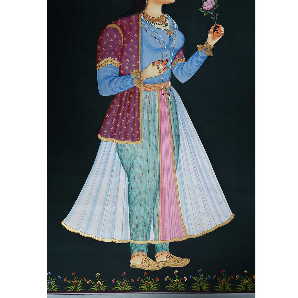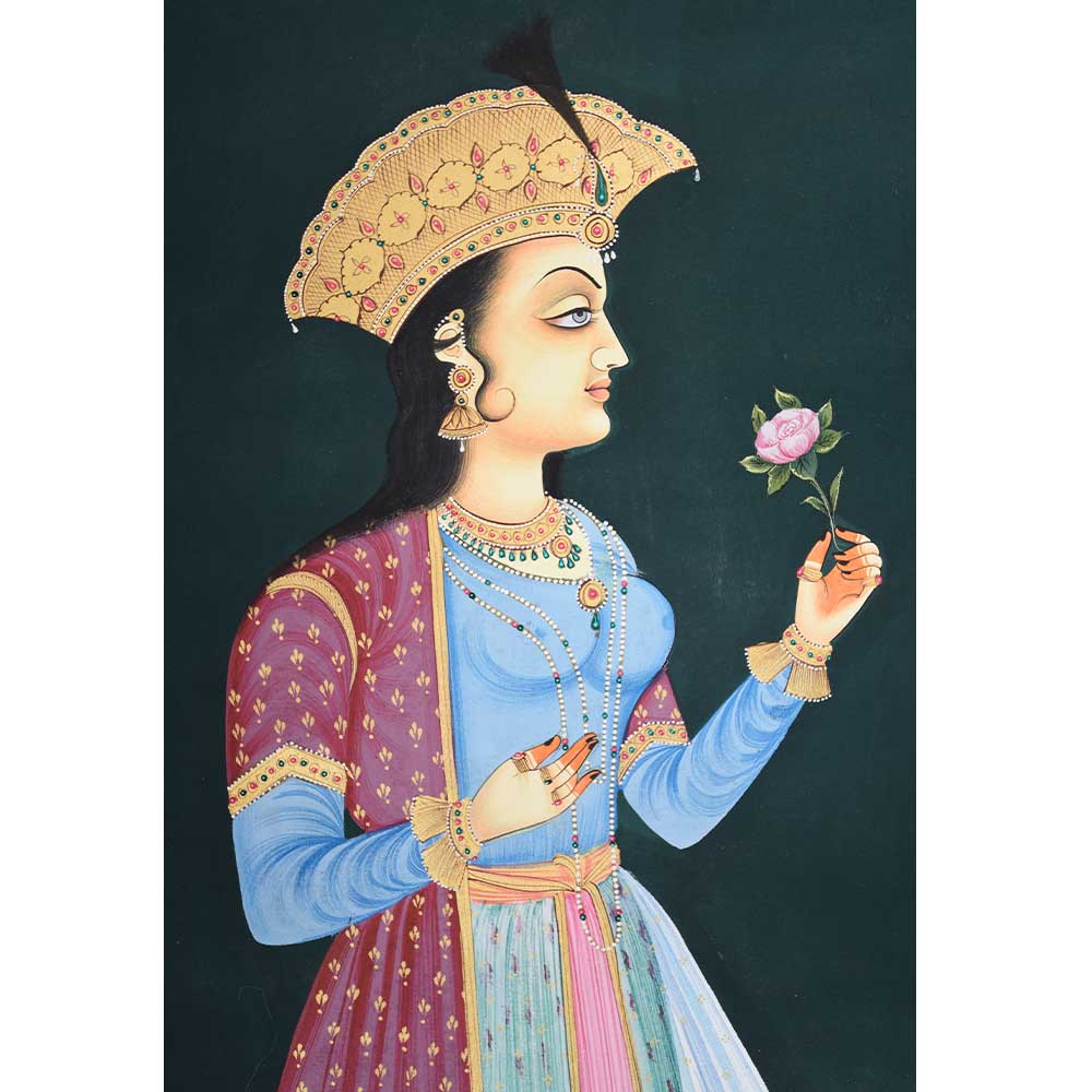 Handmade painting of Mughal princess can be used as wall hanging art for home wall decor, kitchen wall decor and office wall decor.