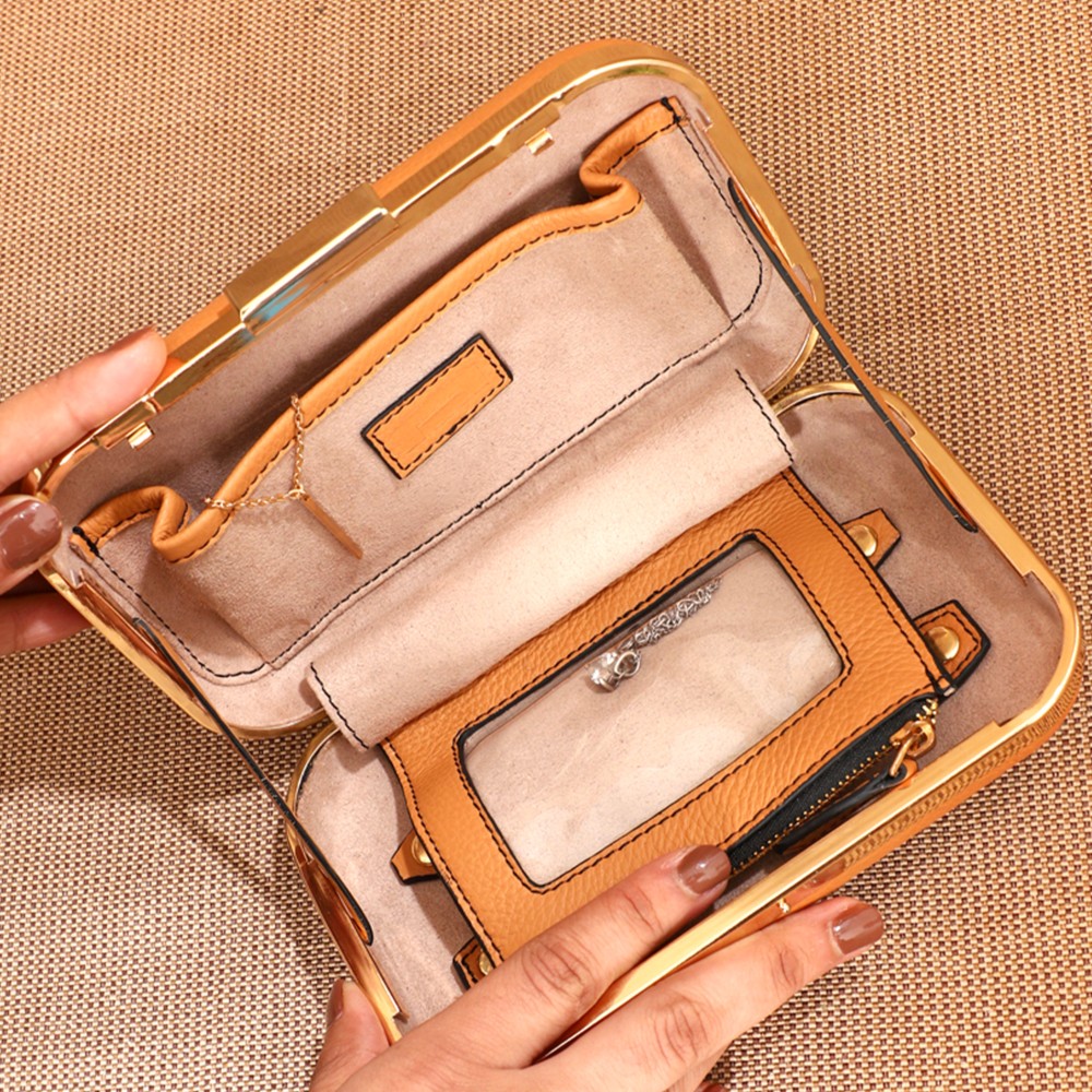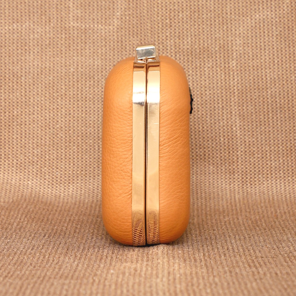 Crafted from gorgeous Peach leather, it has a secure clasp closure, the Jewels Clutch offers a beautifully organized interior. It features a center zip pocket with a view window, allowing you to see your items without needing to open it, perfect for keeping track of your essentials. The accordion pocket is ideal for storing chains and necklaces, keeping them tangle-free and easily accessible. There's also a ring holder that can accommodate up to 7-8 rings, as well as an earring holder designed to neatly store up to three pairs.