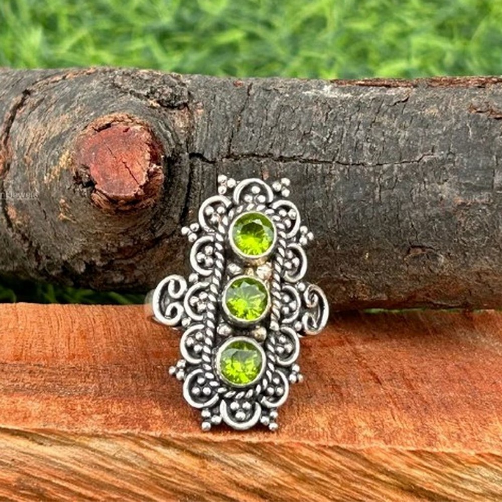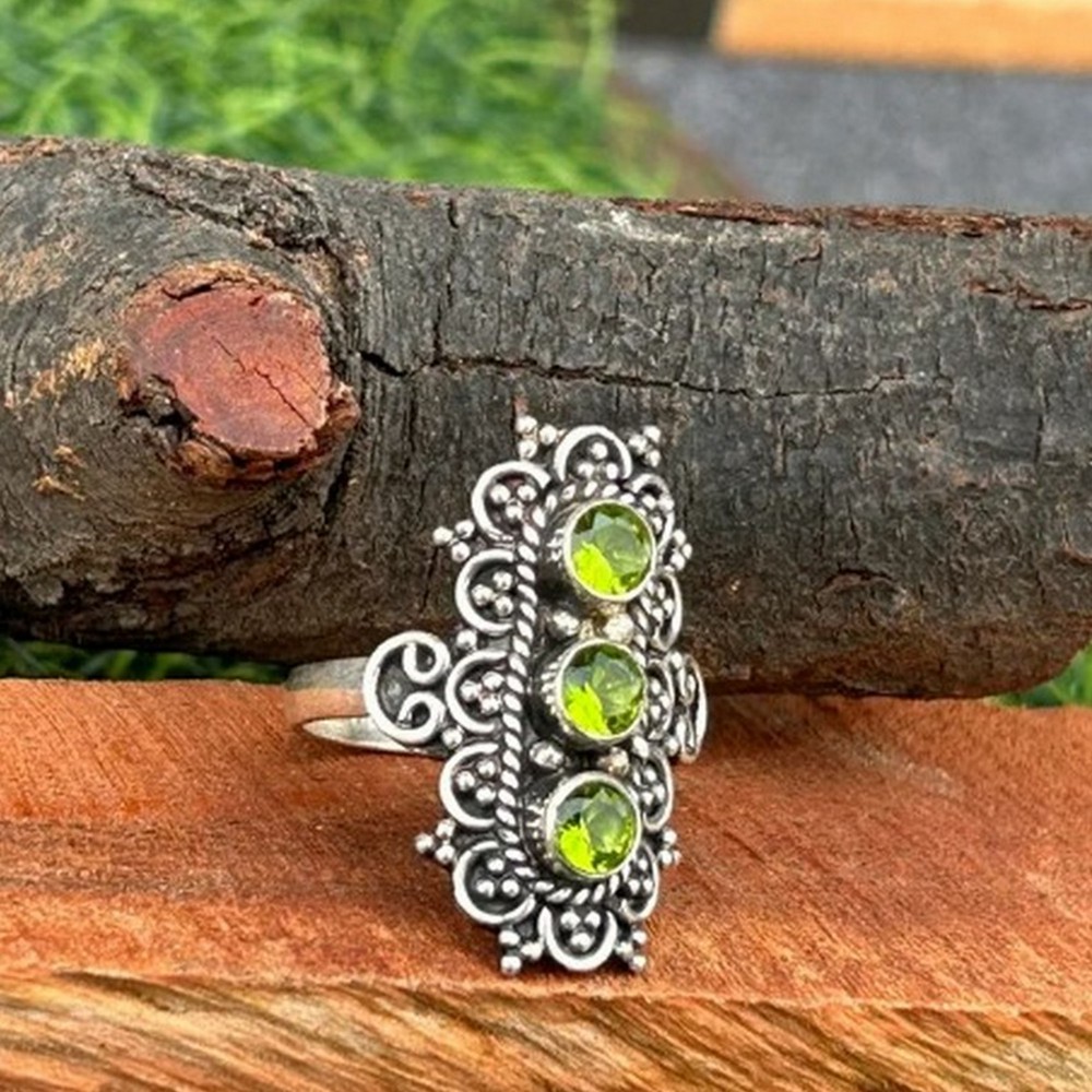 Experience the allure of our handmade peridot 925 sterling silver ring, where natural peridot, 925 sterling silver and three stone designer band come together to create a everyday elegance. This ring is for trendsetters, each piece reflecting individuality and care. Packed & quality-checked by Indianshelf.