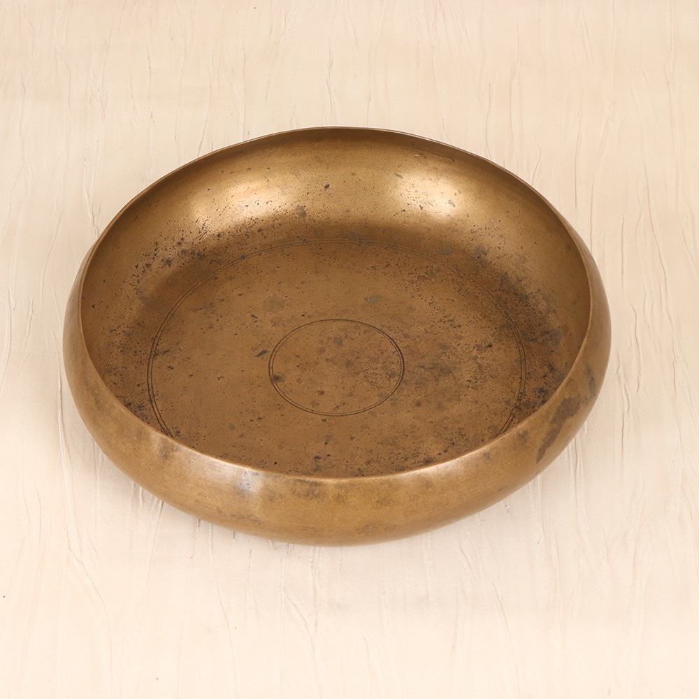 Bring a touch of vintage charm to your home with this stunning bell metal holy pot. Meticulously crafted from high-quality bell metal, this piece exudes a timeless sophistication that will elevate any floral display. The plain brown finish allows the natural beauty of the metal to shine, seamlessly blending with a variety of decor styles. Whether you're arranging a vibrant bouquet, cascading greenery, or a minimalist succulent display, this holy pot provides the perfect vessel to showcase your creativity. Its sturdy and stable base ensures your floral masterpiece remains secure, allowing you to focus on crafting an eye-catching arrangement that will captivate your guests. This versatile holy pot is a must-have for the flower enthusiast, the interior design aficionado, and anyone who appreciates the beauty of handcrafted, heirloom-quality home decor. Elevate your living space and infuse it with a touch of timeless elegance by adding this stunning bell metal holy pot to your collection.