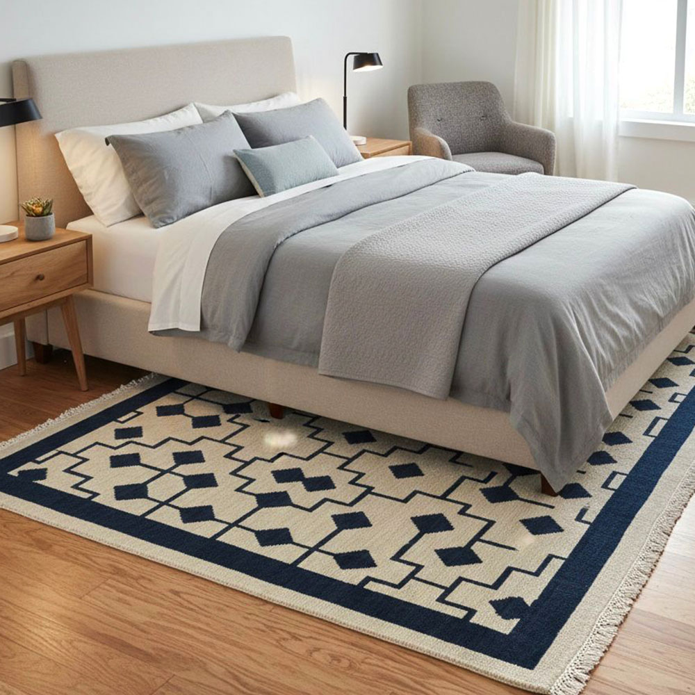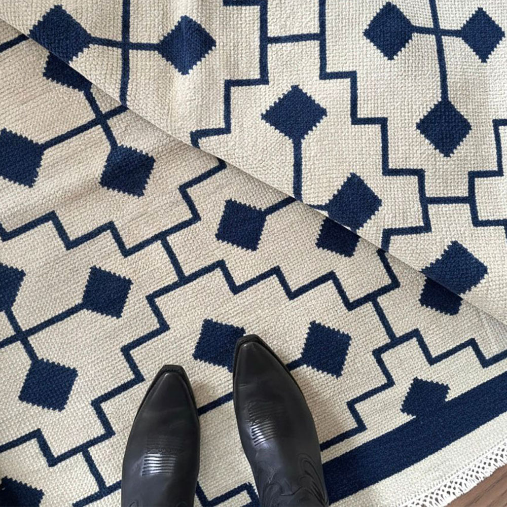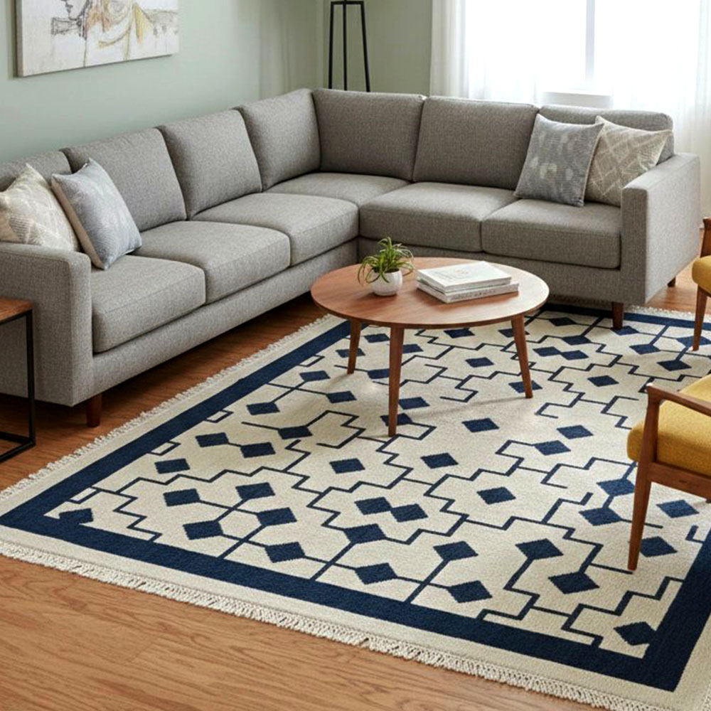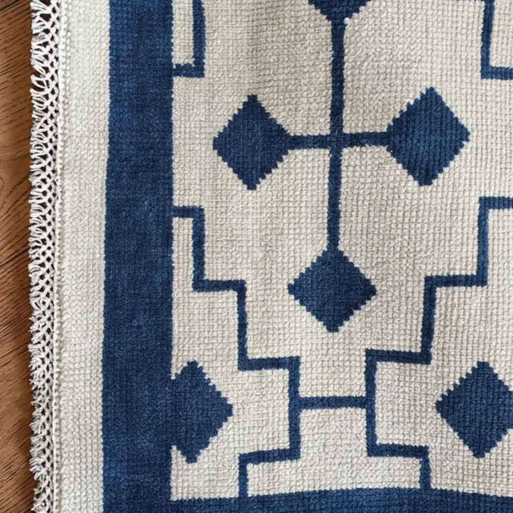 Vacuum gently and rotate the rug periodically to distribute wear evenly. Avoid direct sunlight and moisture, and have the rug professionally cleaned every two years to remove dirt and maintain its appearance.
