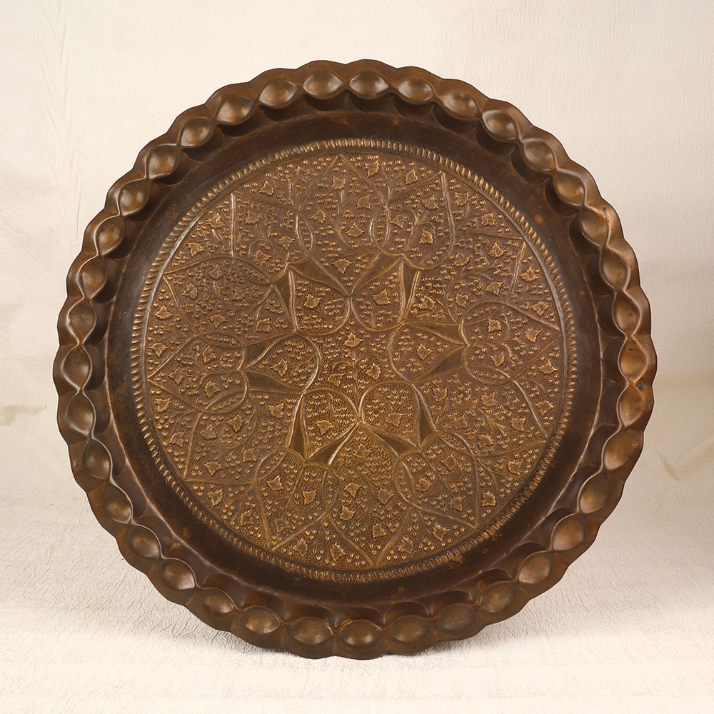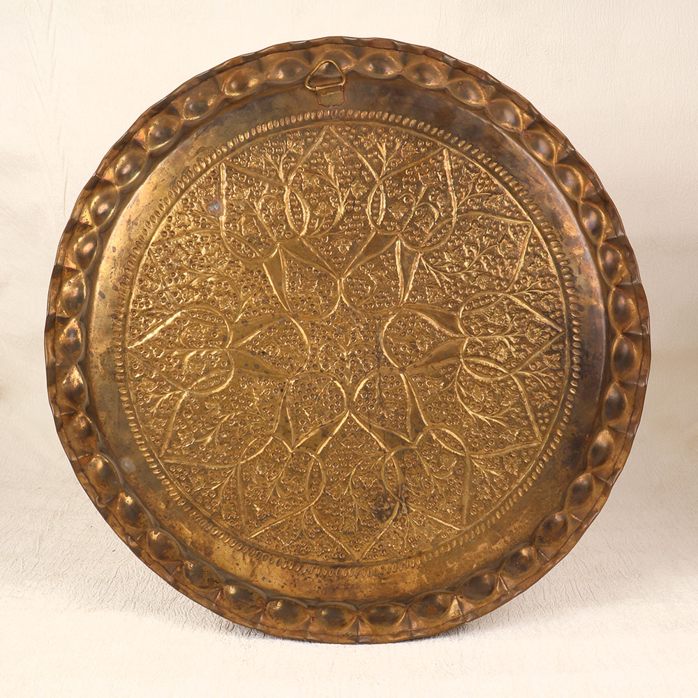 This Floral Engraved Brass Plate Brings Timeless Charm to Your Walls. This vintage brass plate engraved with an ornate floral design will infuse timeless beauty into your home. The intricate engraving circles the solid brass plate in an artistic motif. With a vintage brass finish showing natural wear, this plate provides a dose of old-world charm and character to your walls. At 18 inches in diameter, this substantial brass plate delivers bold style when hung in entryways, bedrooms, dining rooms and more. The durable brass construction securely mounts to add an artistic focal point. Let this floral engraved brass plate transport you back in time with its vintage vibe, while complementing any decor from traditional to contemporary. Add instant vintage appeal to your home with this stunning engraved brass plate!