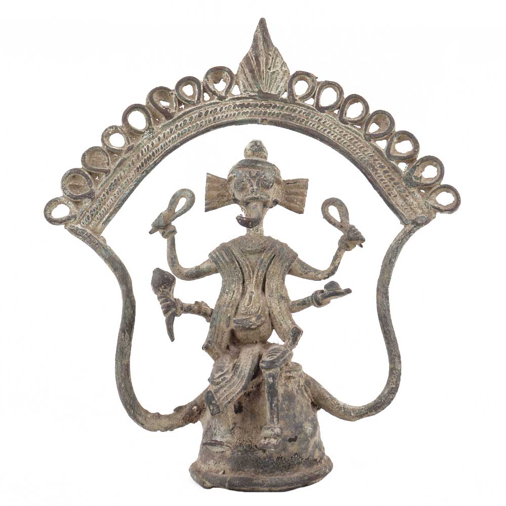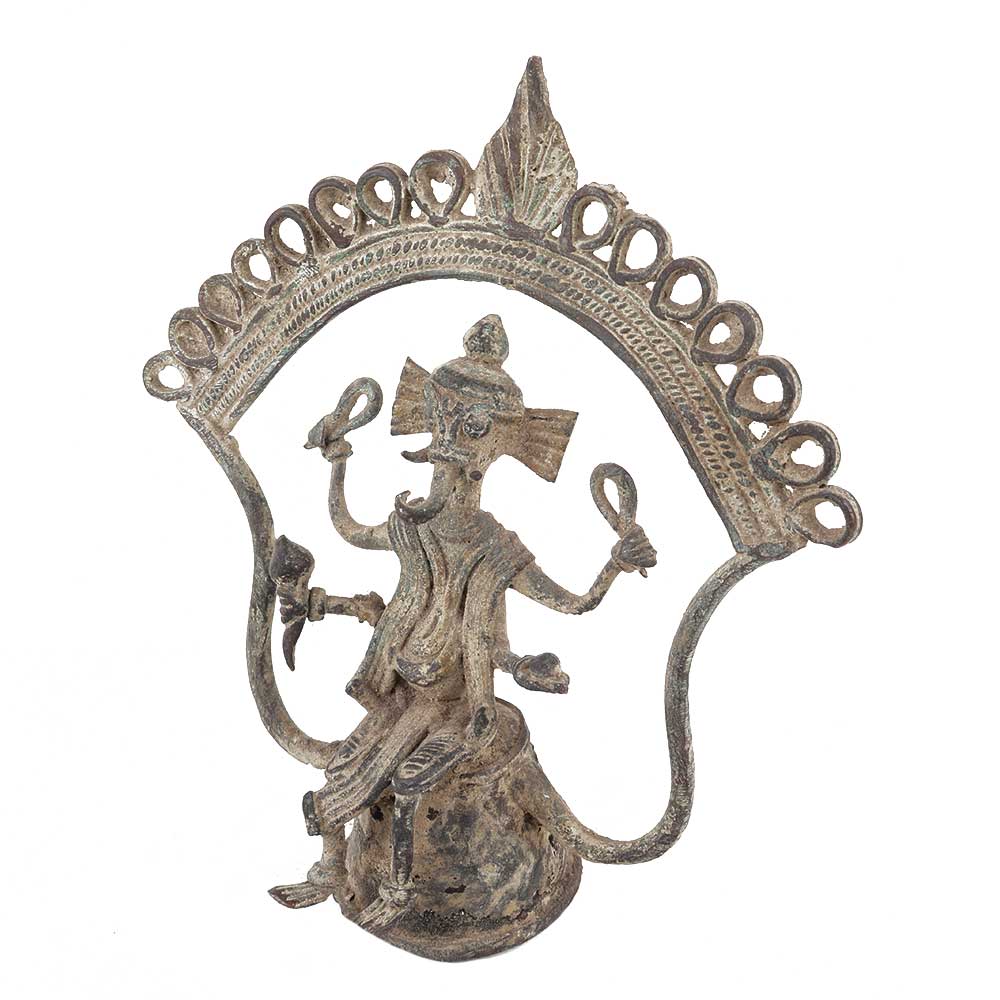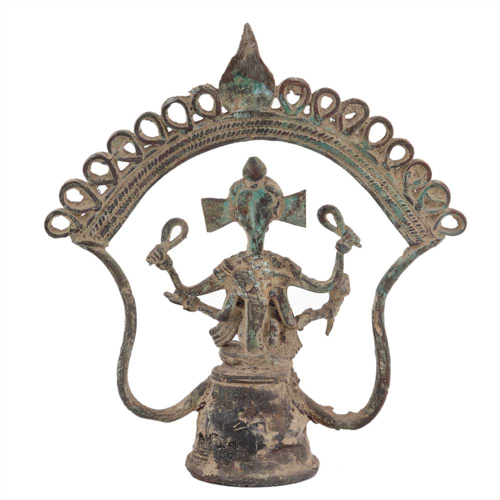 Brass Dhokra Ganesha statue with a rustic finish is an elegant showpiece for your dining room table, in your bedroom or on shelves for decoration.