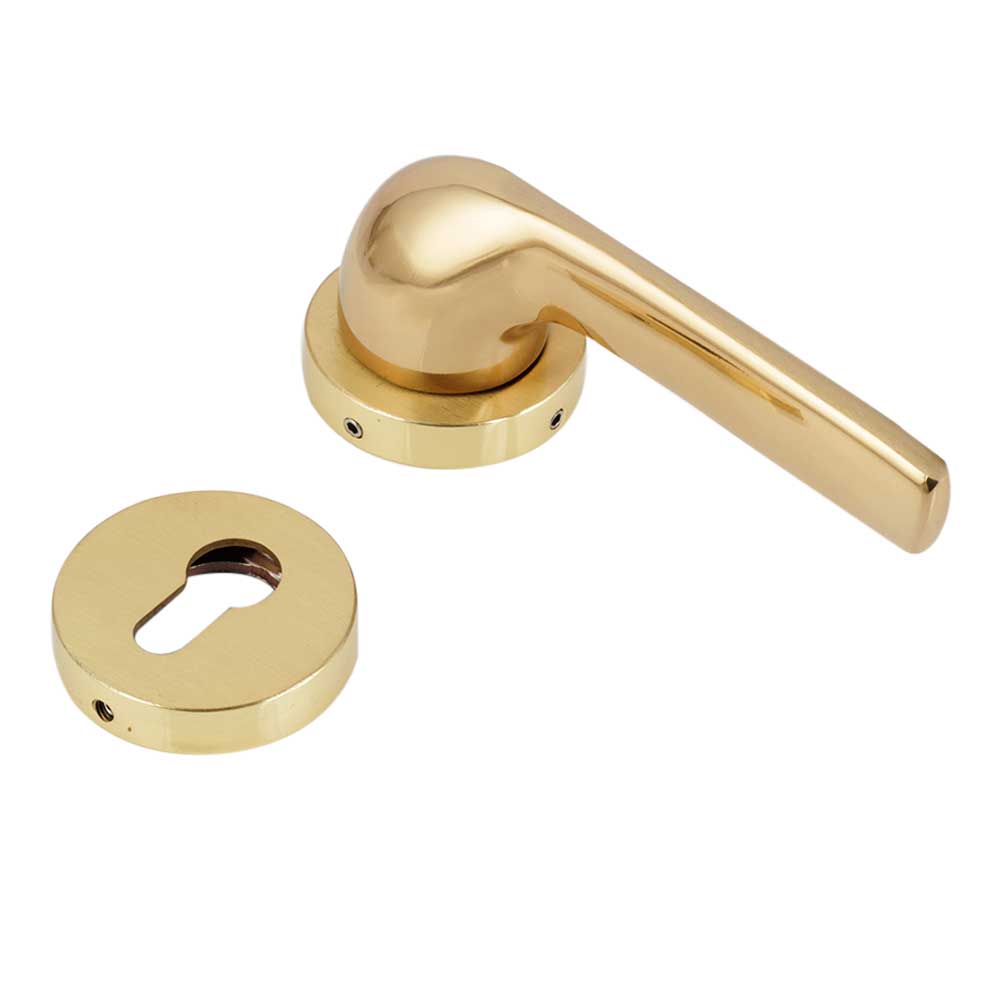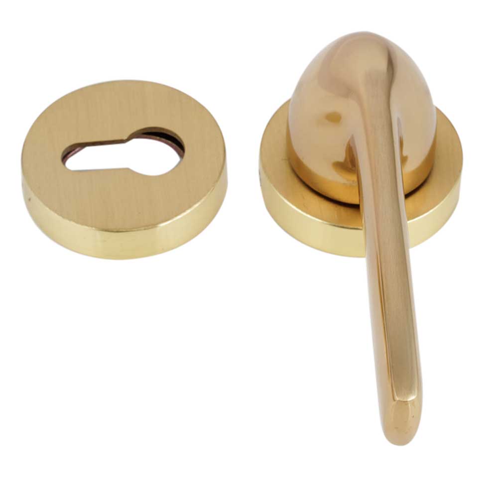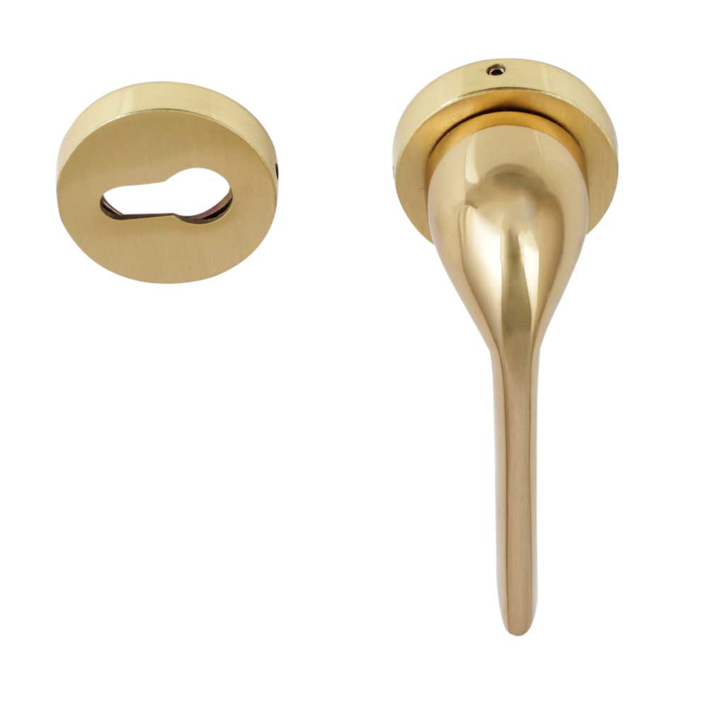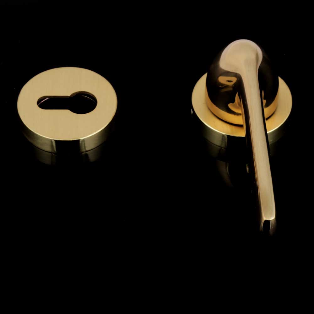 Handmade satin brass contemporary door handle set fits most standard door sizes. It perfectly complements both traditional or contemporary home interior settings.